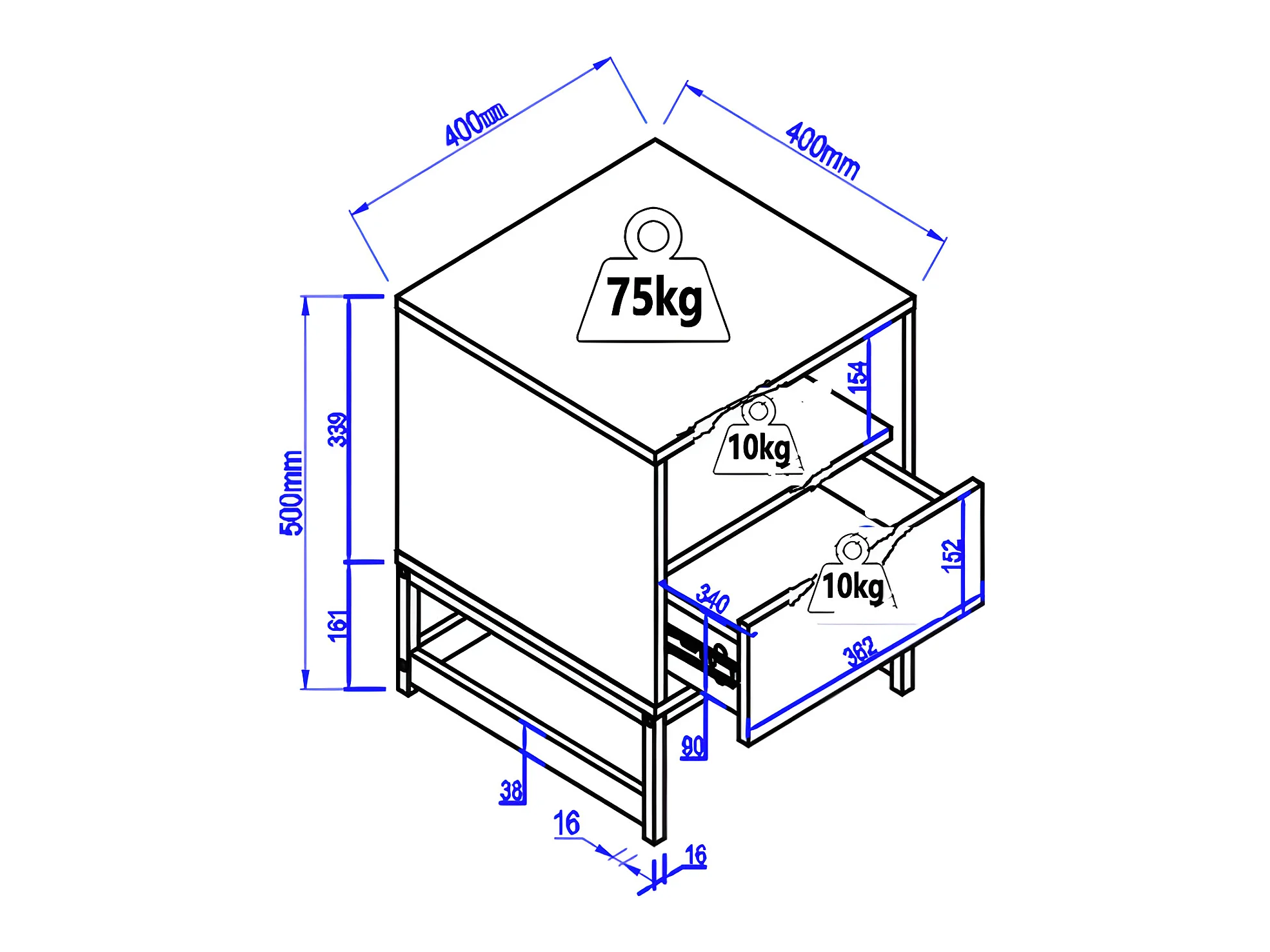 Nachtkästchen im Industry und Loft Stil zwei Schubladen