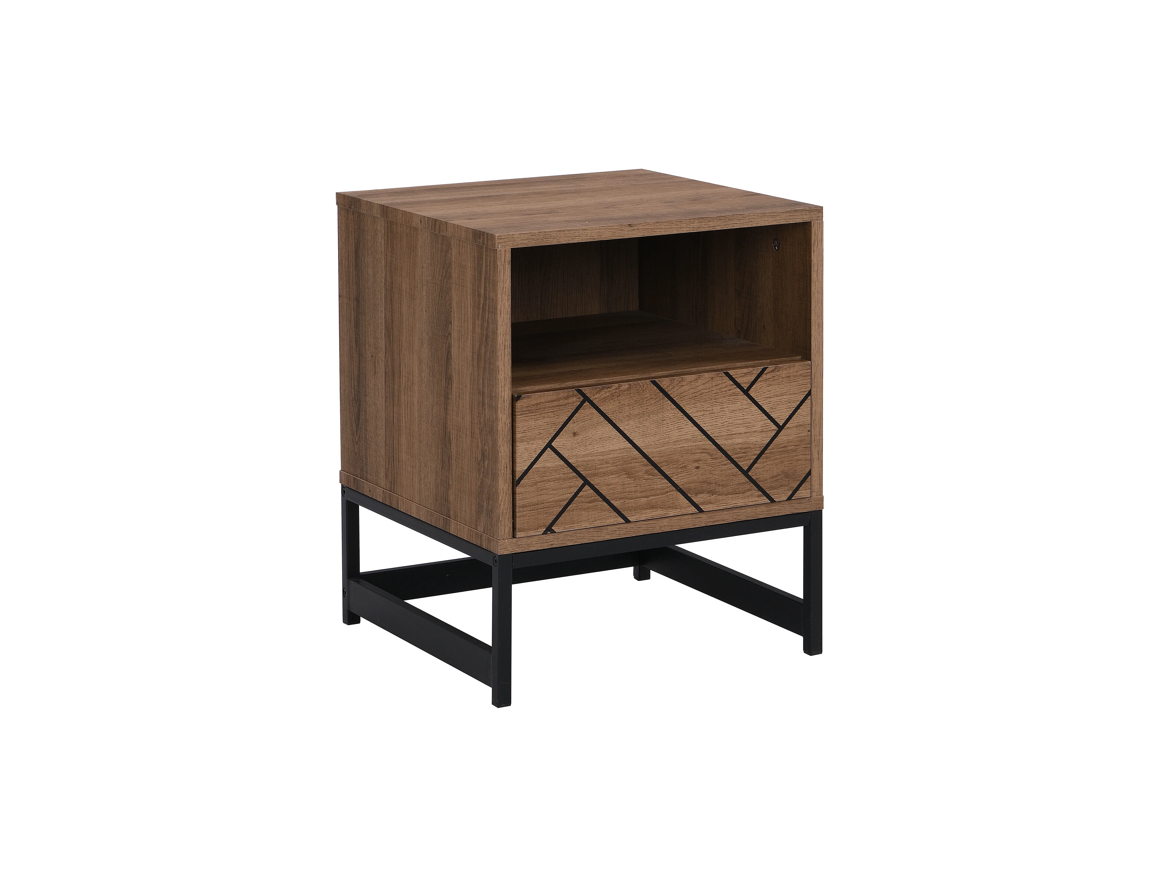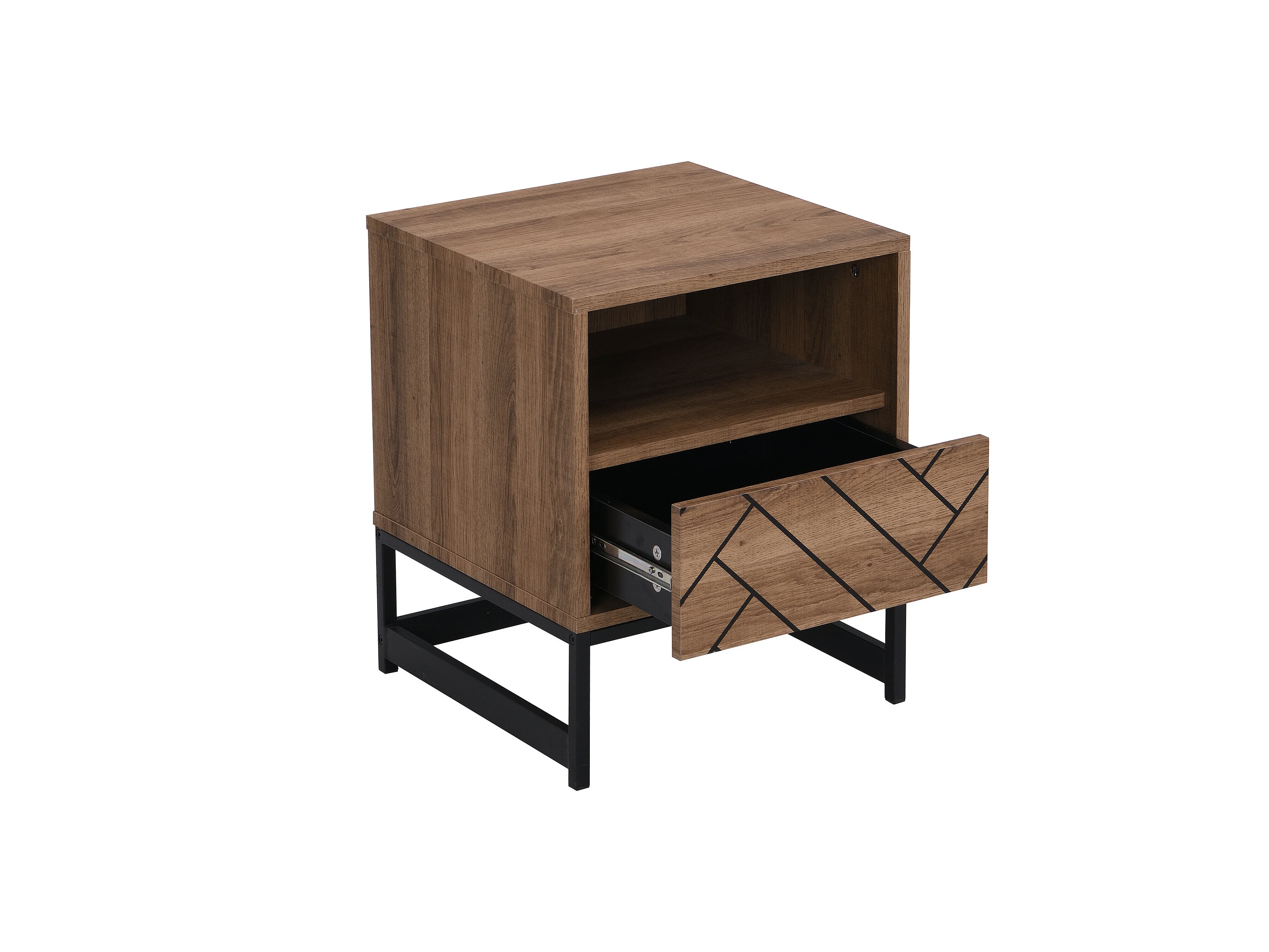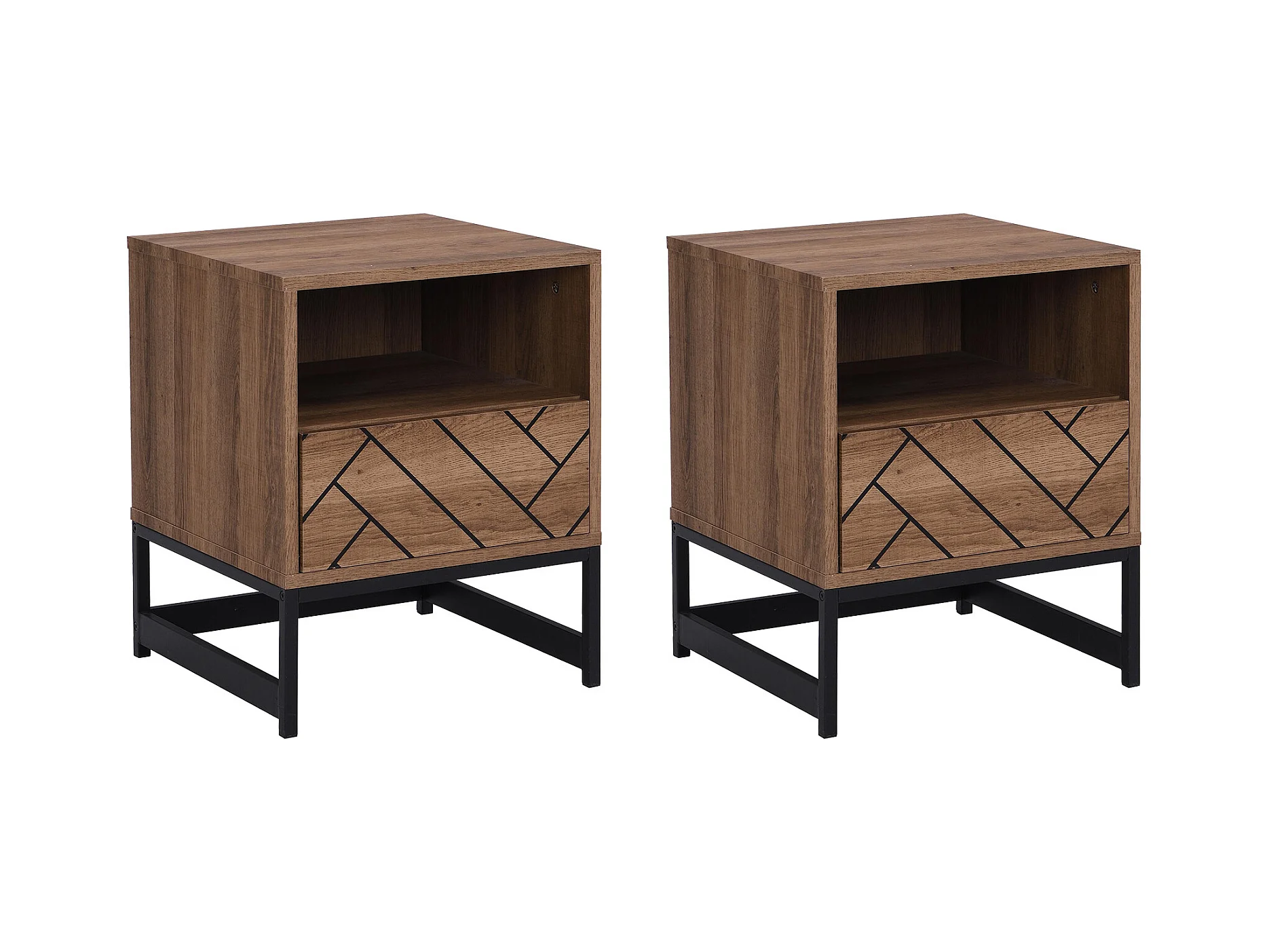 2er-Set Nachttische mit 1 Schublade & 1 Ablage - MDF & Stahl - Holzfarben & Schwarz - CARATANA