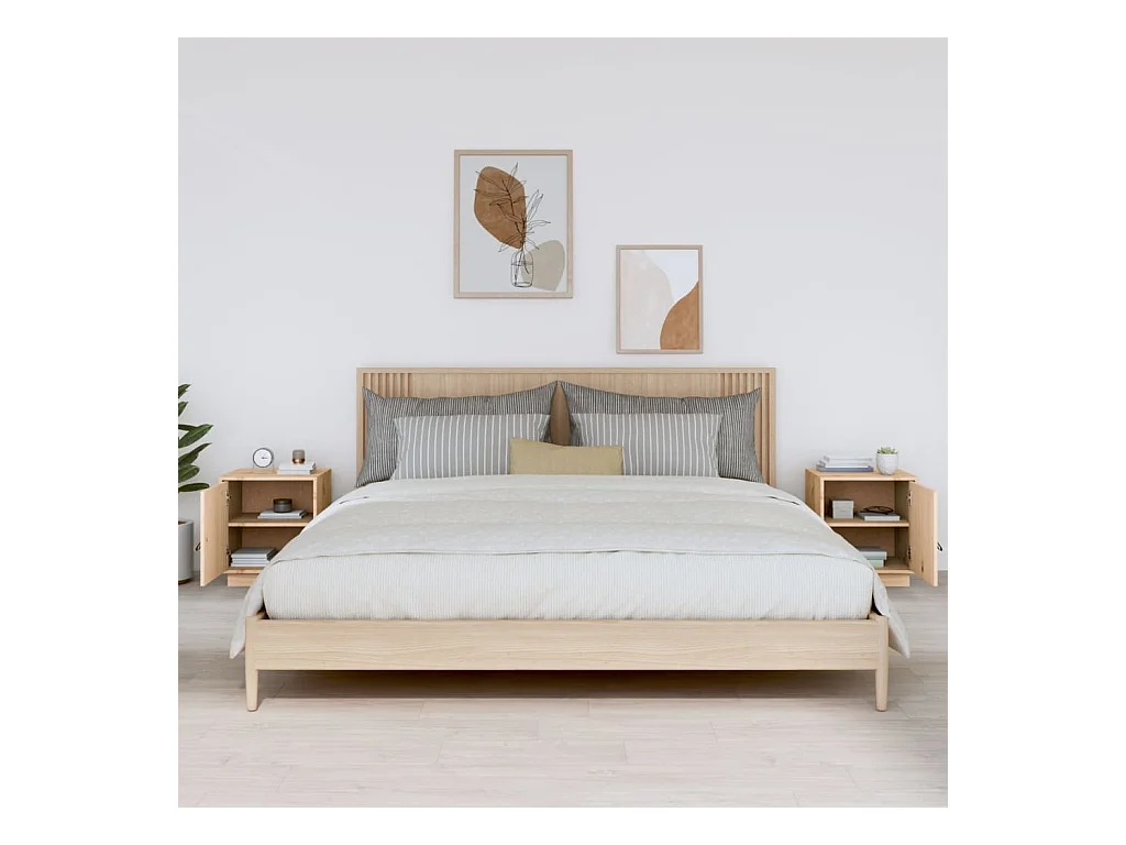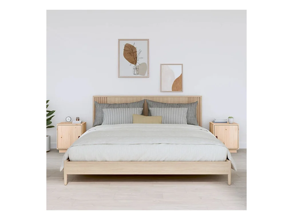 2er-Set Nachttische Nachtschrank 40x34x45 cm Massivholz Kiefer -RN76590