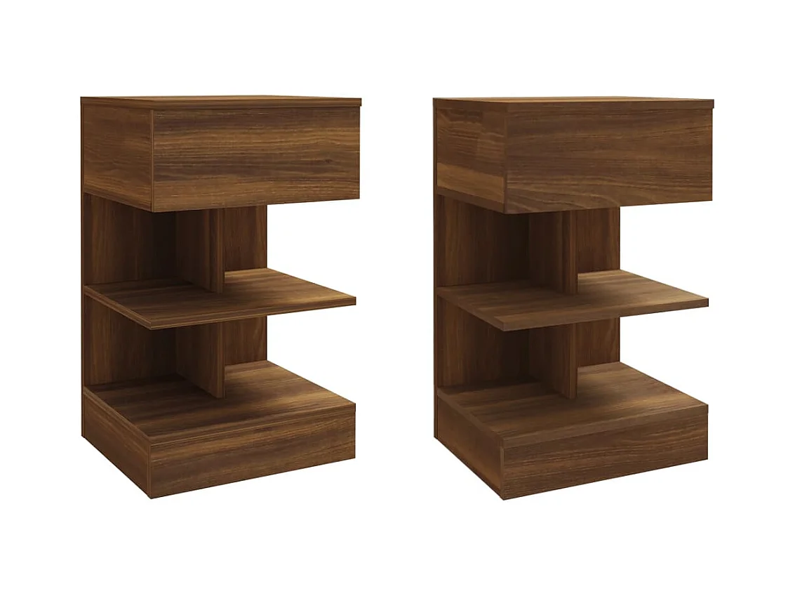 2er-Set Nachttische Nachtschrank Braun Eiche 40x35x65 cm Holzwerkstoff -RN13031