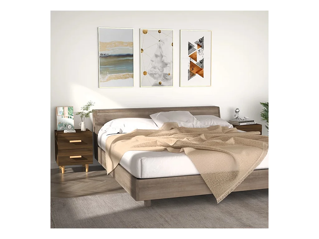 2er-Set Nachttische Nachtschrank Braun Eichen-Optik 40x35x47,5 cm -RN96610