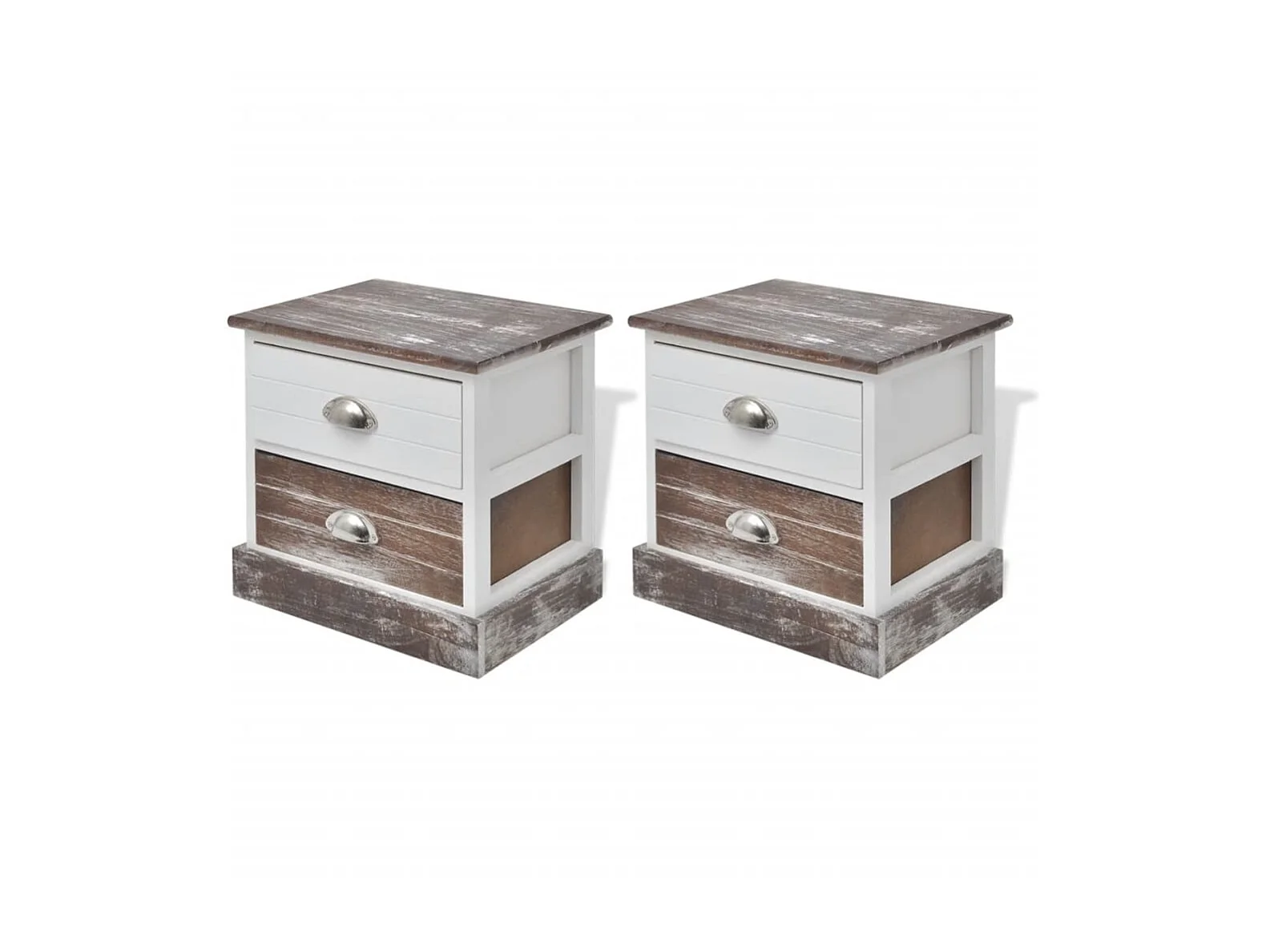 2er-Set Nachttische Nachtschrank Braun und Weiß -RN31167