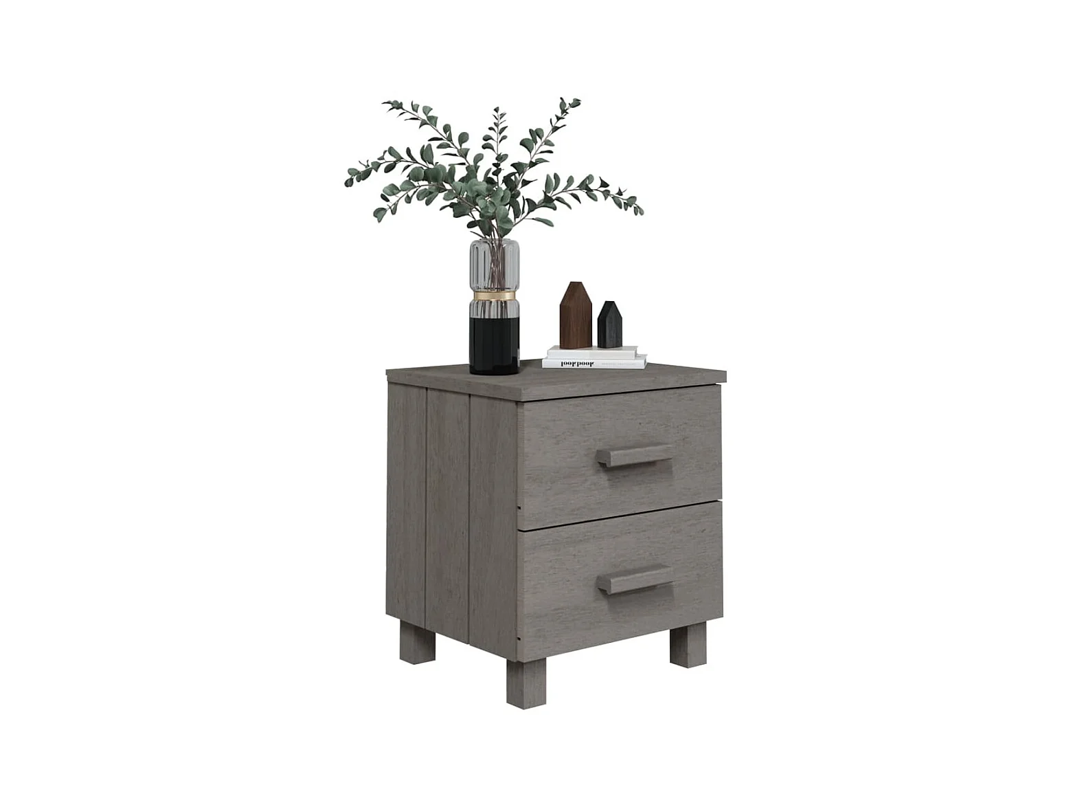 2er-Set Nachttische Nachtschrank HAMAR Hellgrau 40x35x44,5 cm Massivholz -RN95757