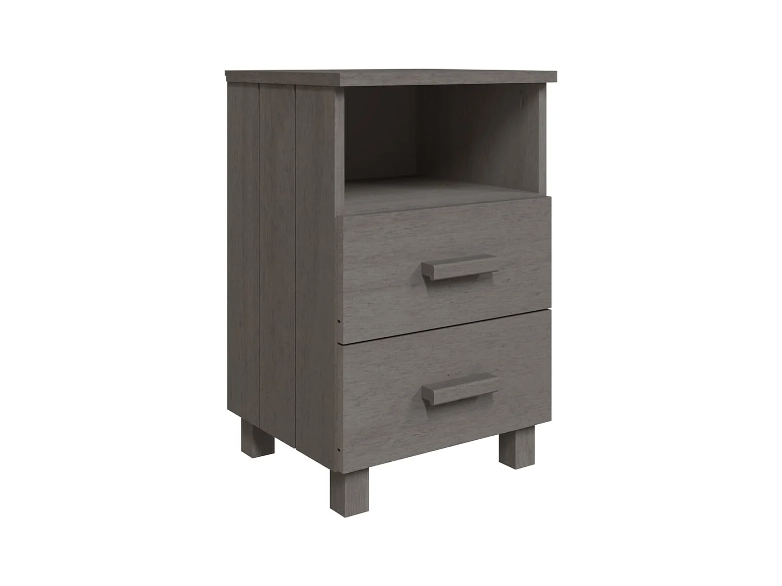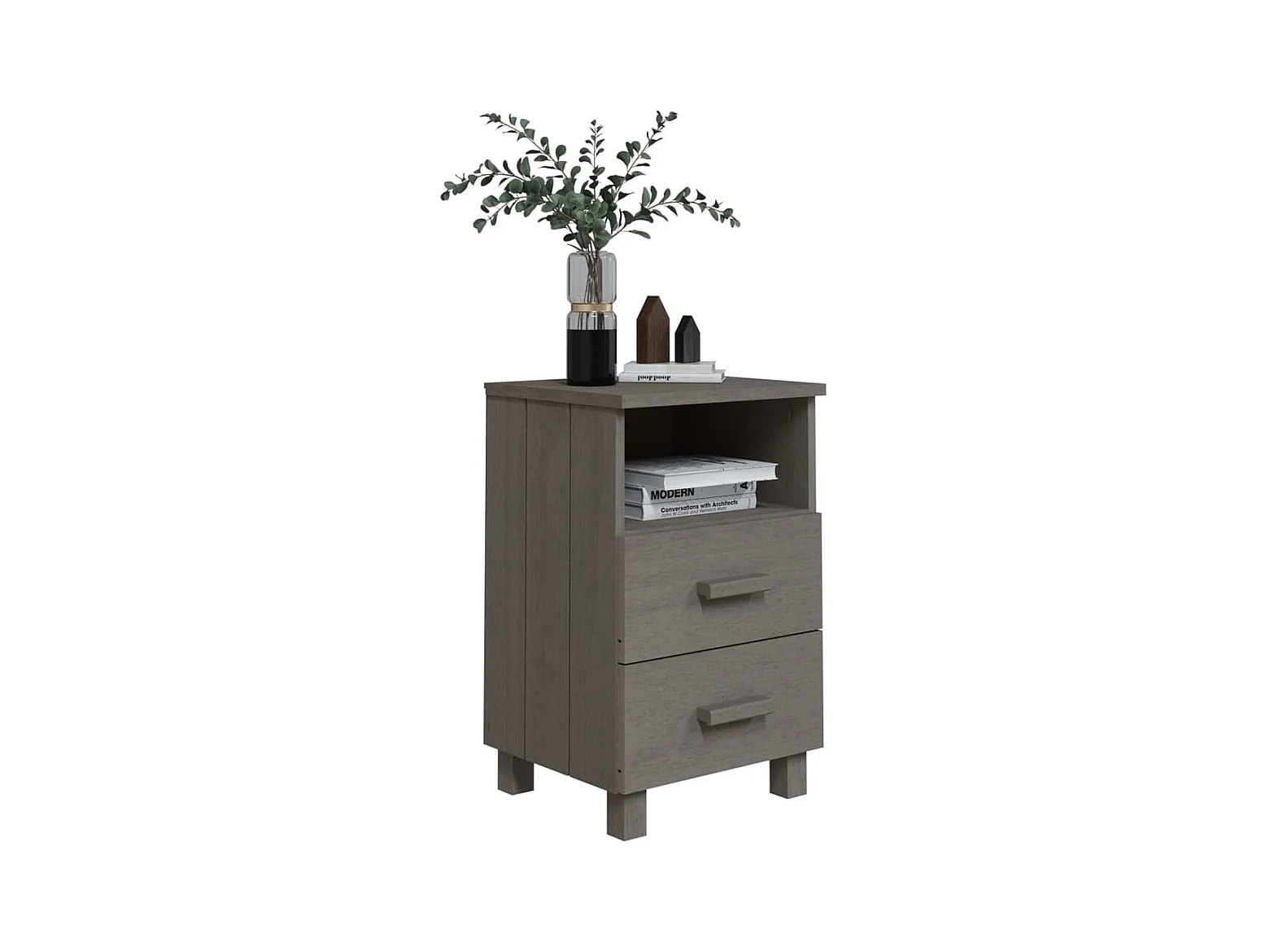 2er-Set Nachttische Nachtschrank HAMAR Hellgrau 40x35x62 cm Massivholz -RN72634