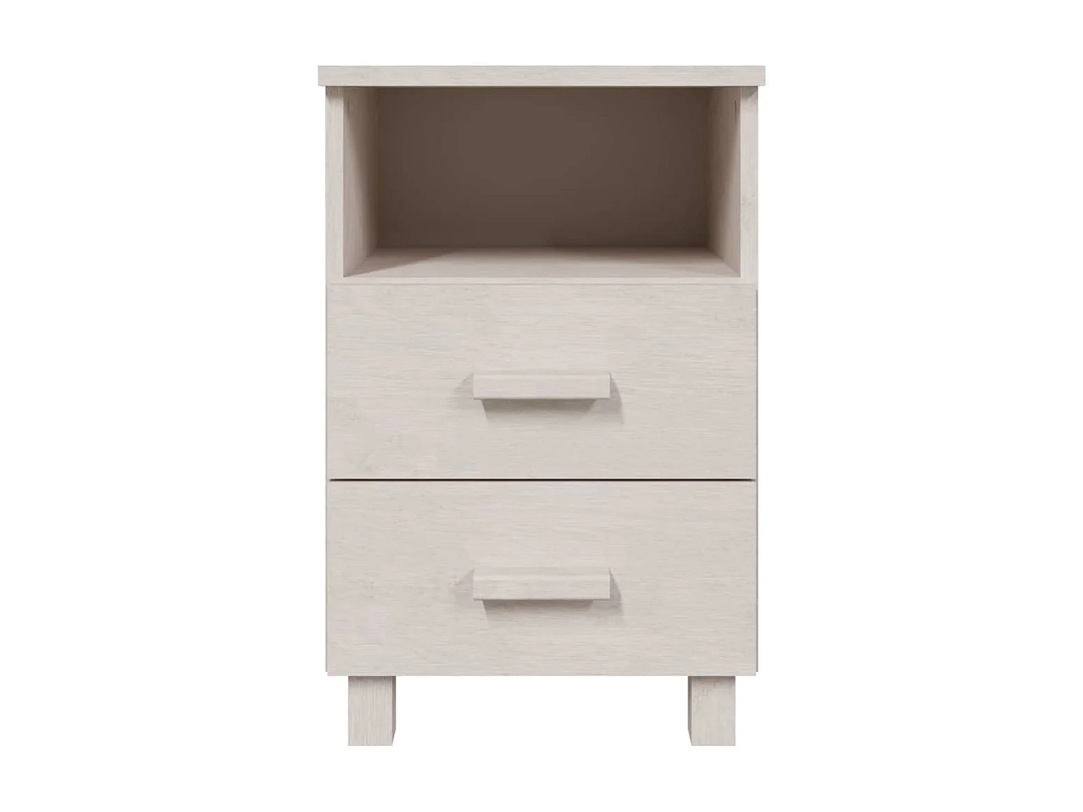 2er-Set Nachttische Nachtschrank HAMAR Weiß 40x35x62 cm Massivholz -RN78221