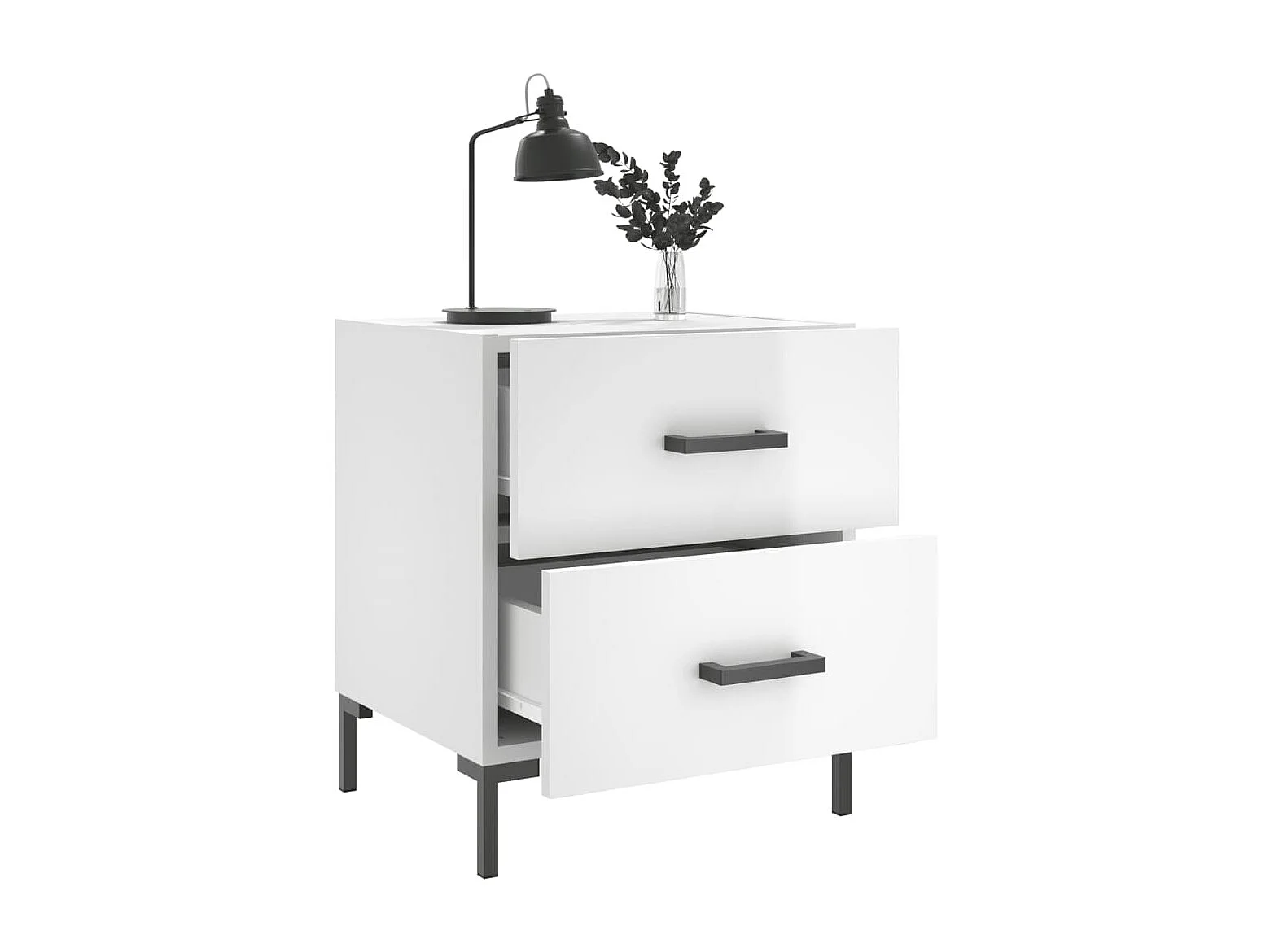 2er-Set Nachttische Nachtschrank Hochglanz-Weiß 40x35x47,5 cm Holzwerkstoff -RN26067