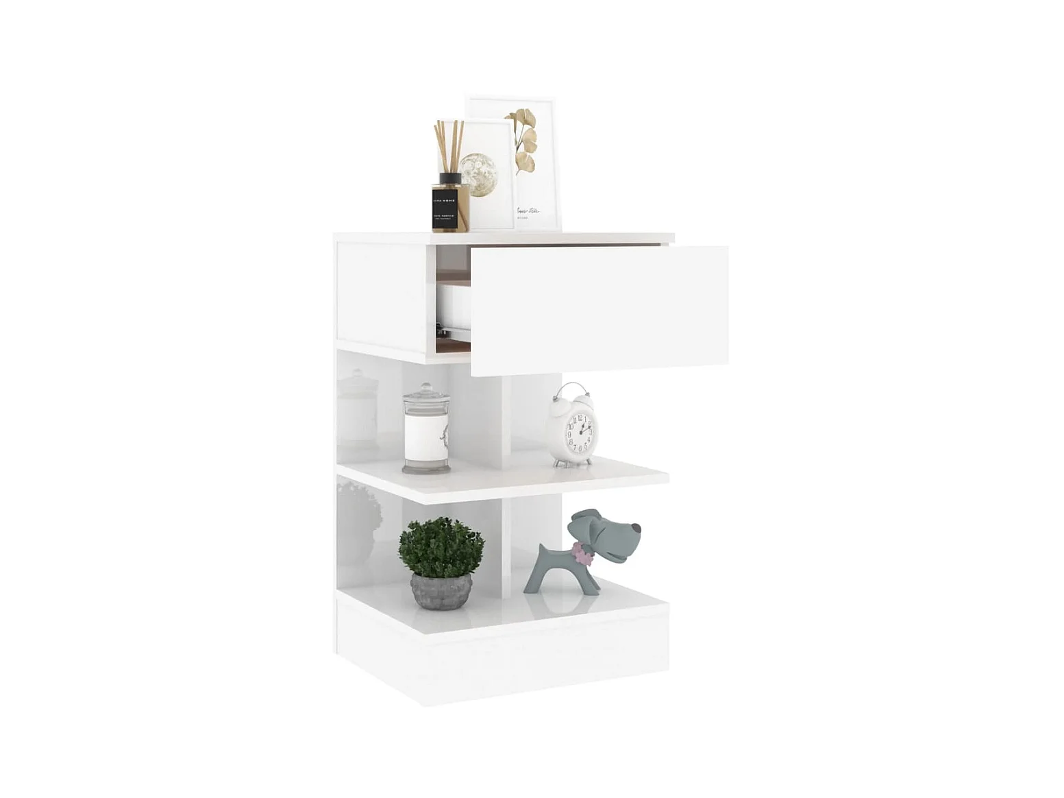 2er-Set Nachttische Nachtschrank Hochglanz-Weiß 40x35x65 cm -RN63493