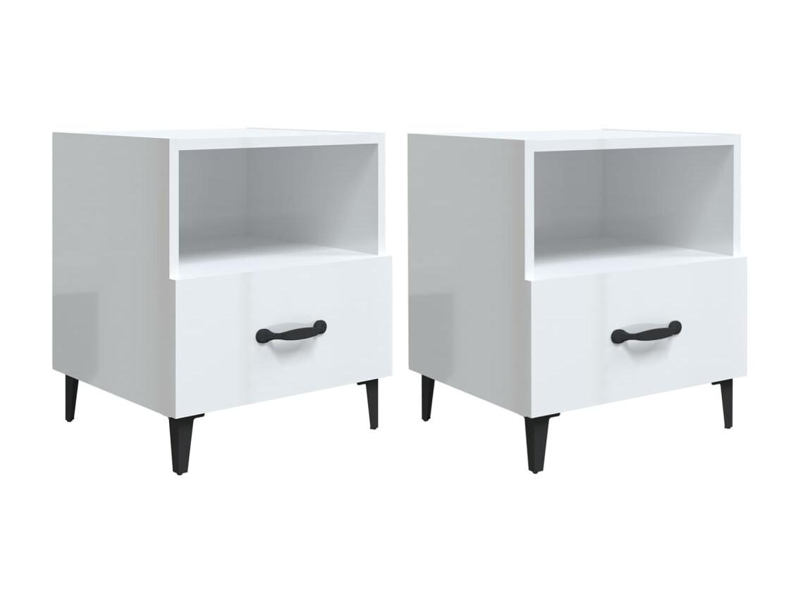 2er-Set Nachttische Nachtschrank Hochglanz-Weiß Holzwerkstoff -RN80576
