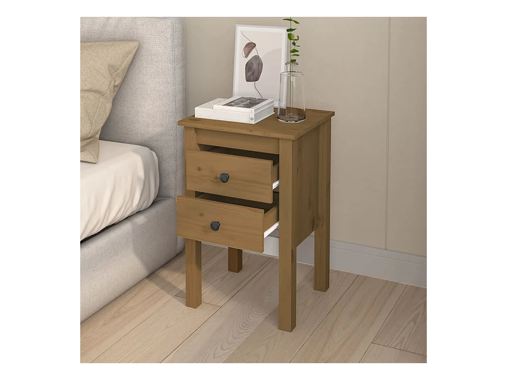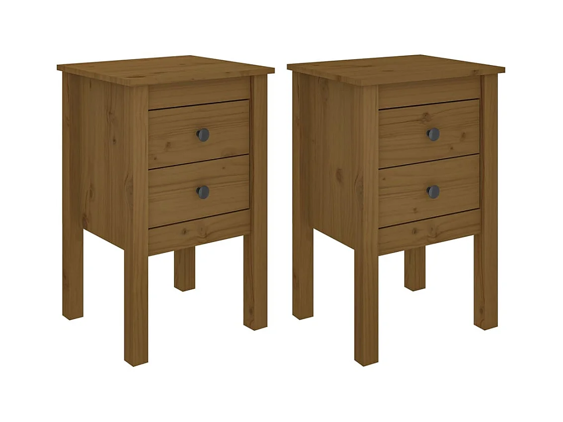 2er-Set Nachttische Nachtschrank Honigbraun 40x35x61,5 cm Massivholz Kiefer -RN49049