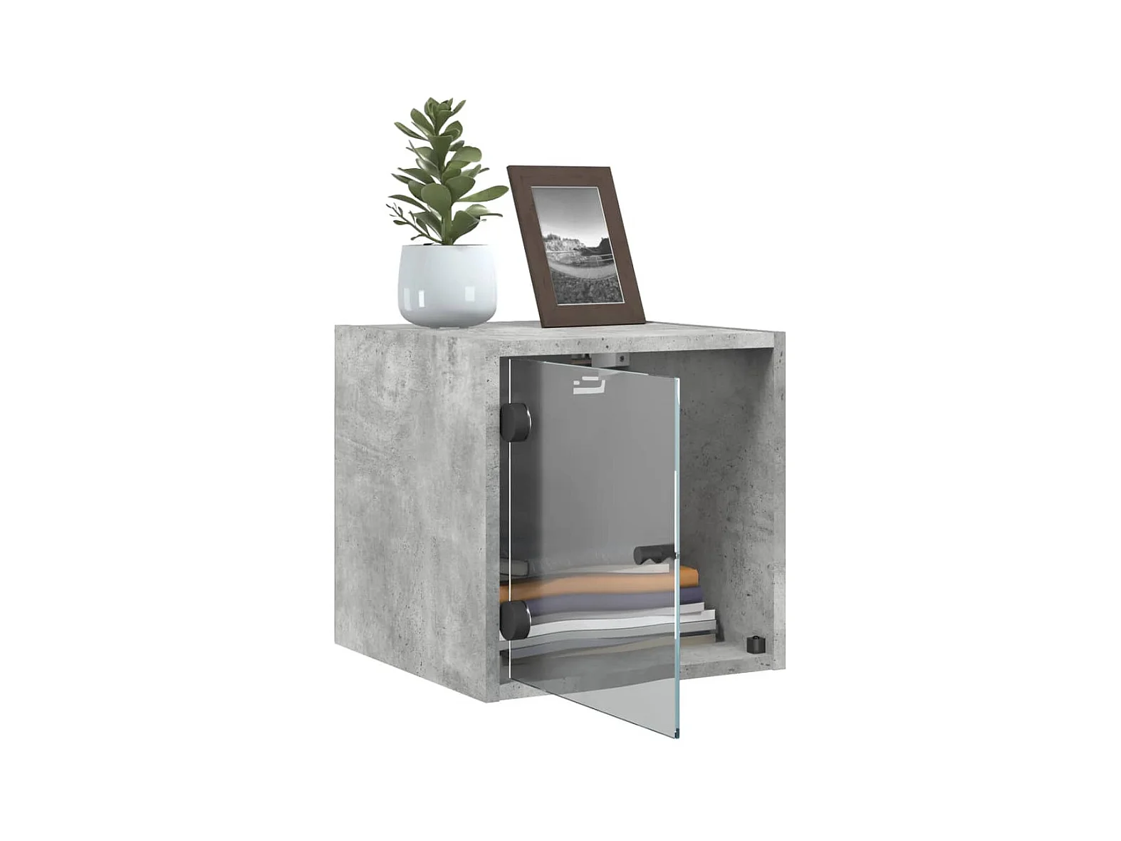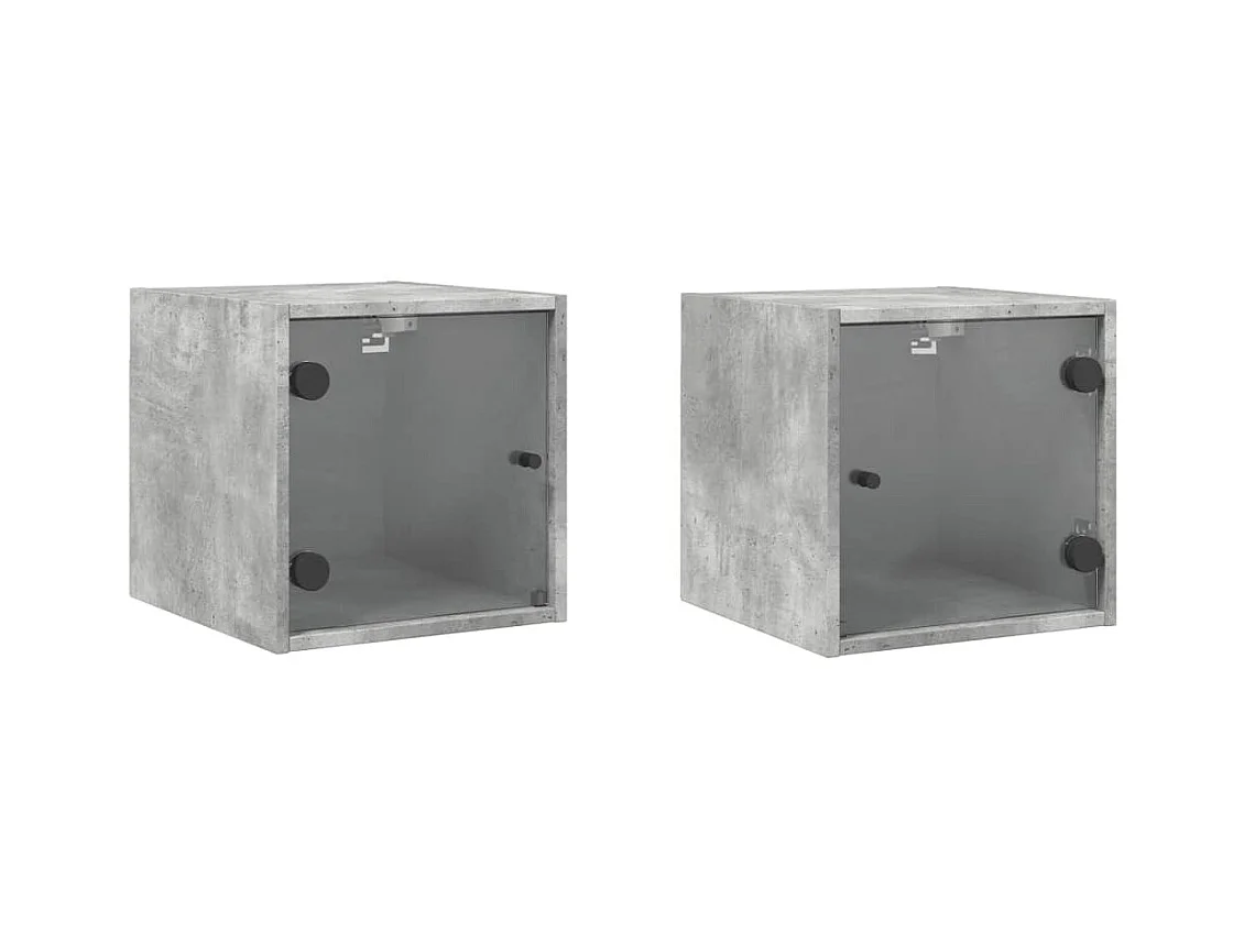 2er-Set Nachttische Nachtschrank mit Glastüren Betongrau 35x37x35 cm -RN48932