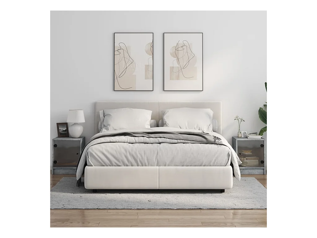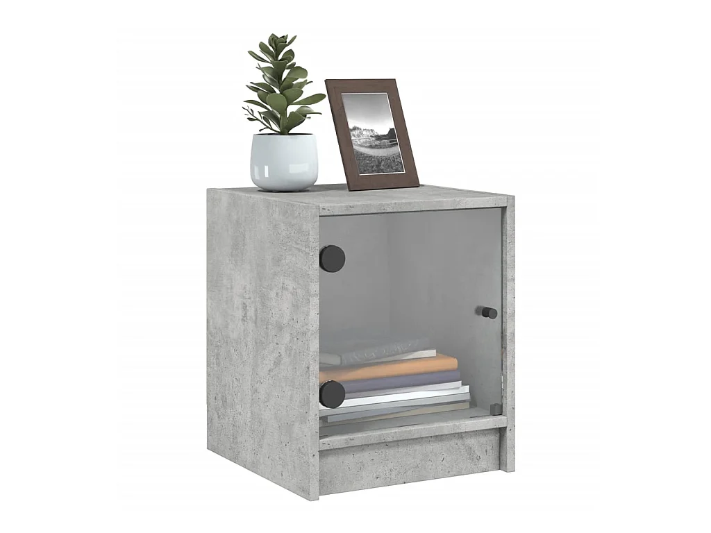 2er-Set Nachttische Nachtschrank mit Glastüren Betongrau 35x37x42 cm -RN58632