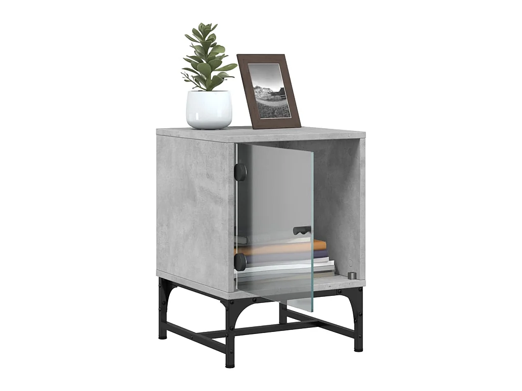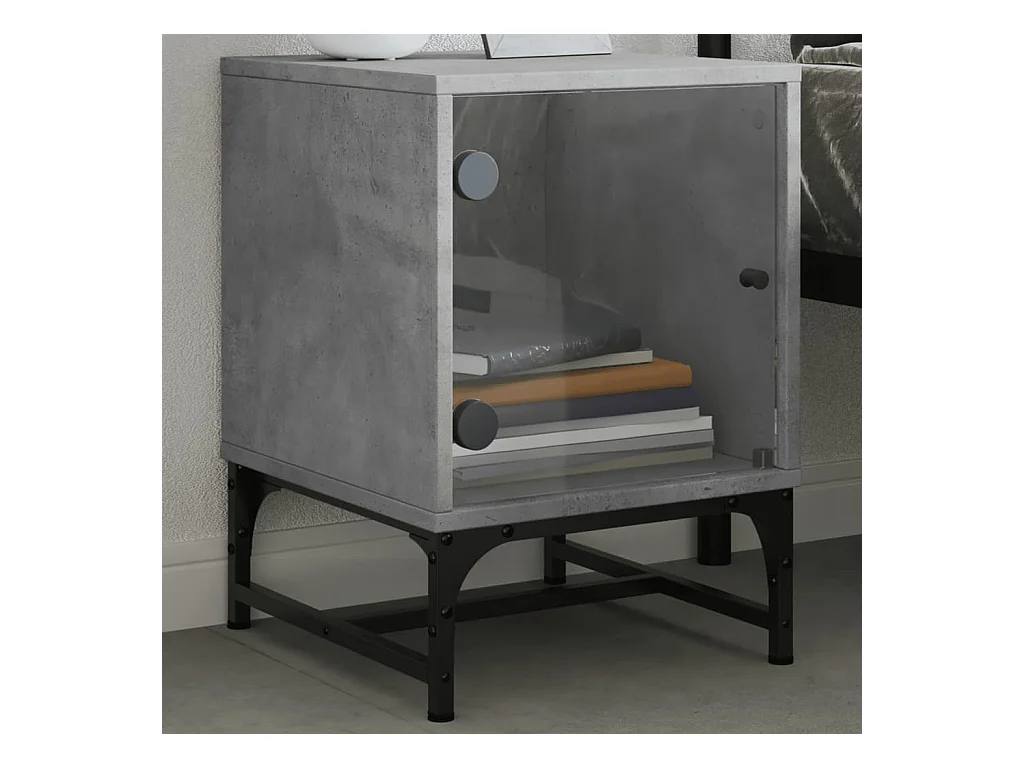 2er-Set Nachttische Nachtschrank mit Glastüren Betongrau 35x37x50 cm -RN63946