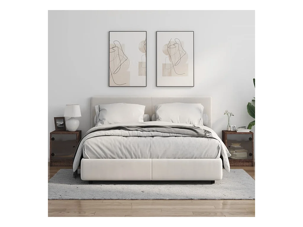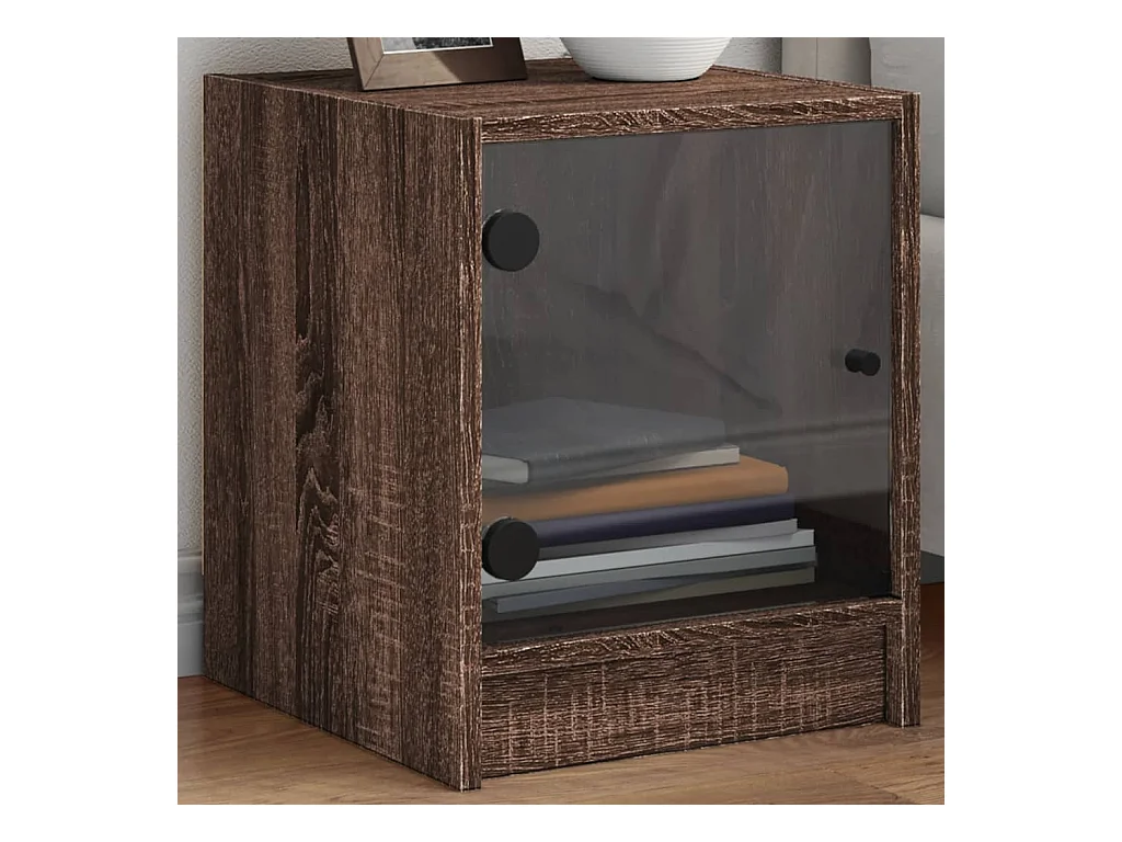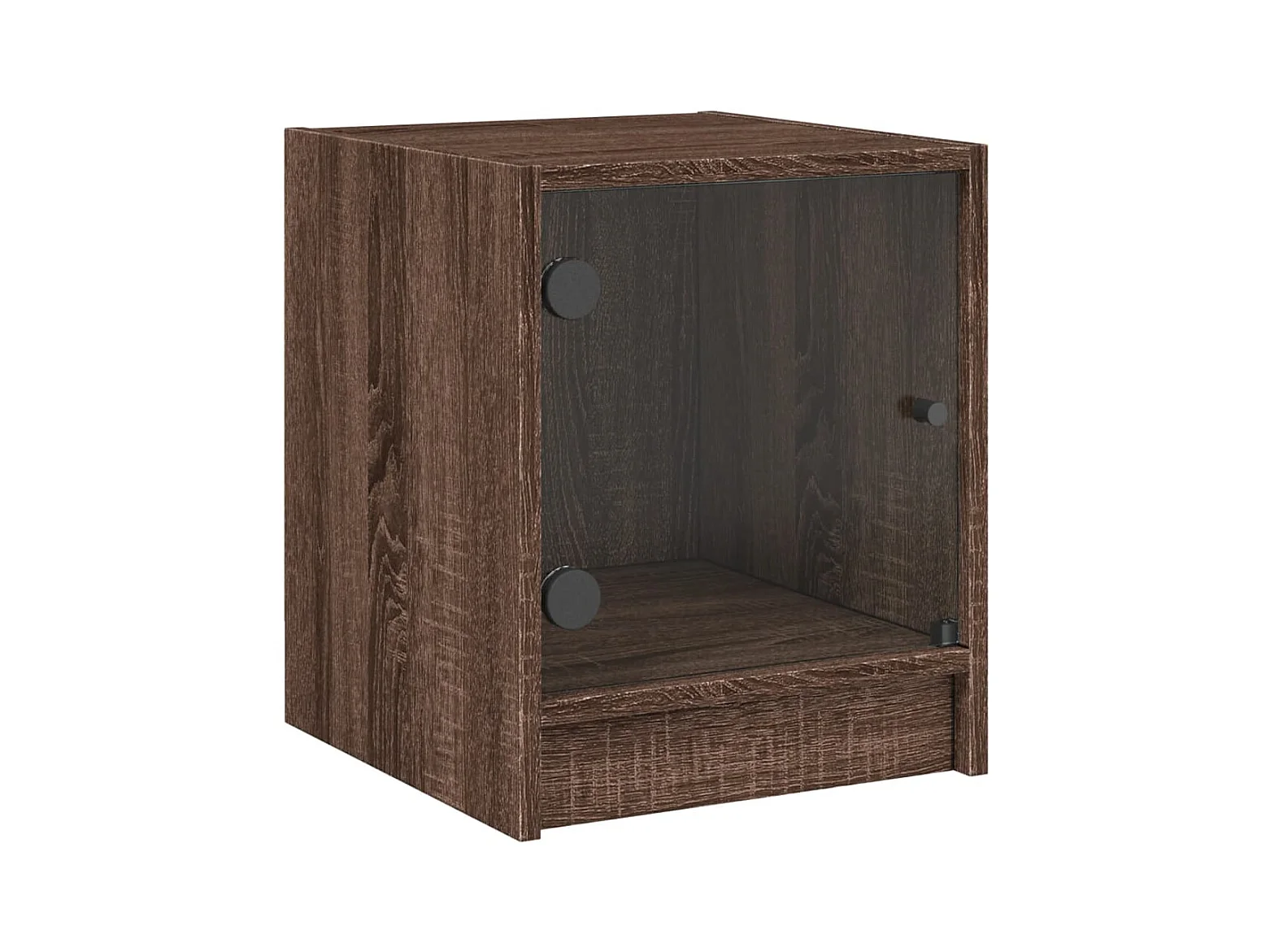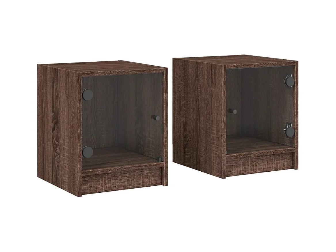 2er-Set Nachttische Nachtschrank mit Glastüren Braun Eichen-Optik 35x37x42 cm -RN93926