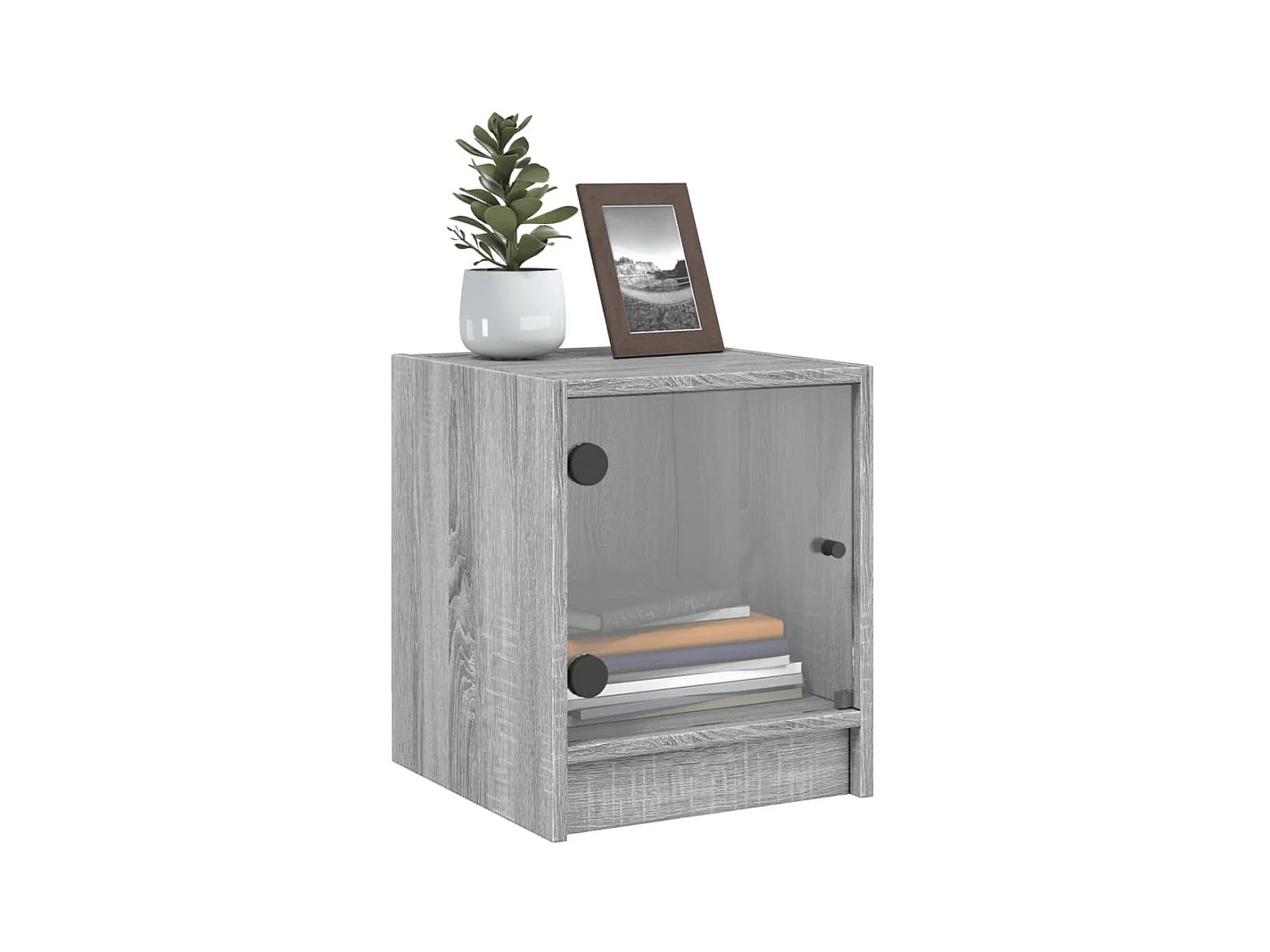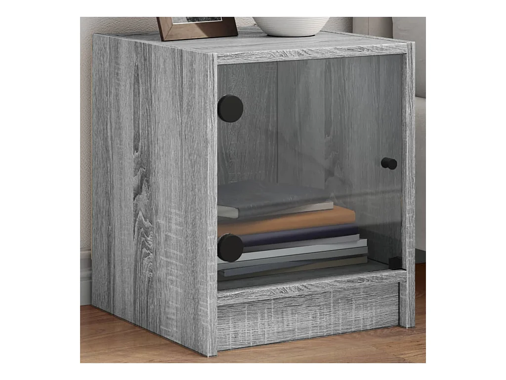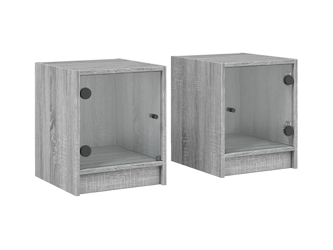 2er-Set Nachttische Nachtschrank mit Glastüren Grau Sonoma 35x37x42 cm -RN17185