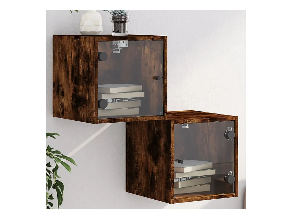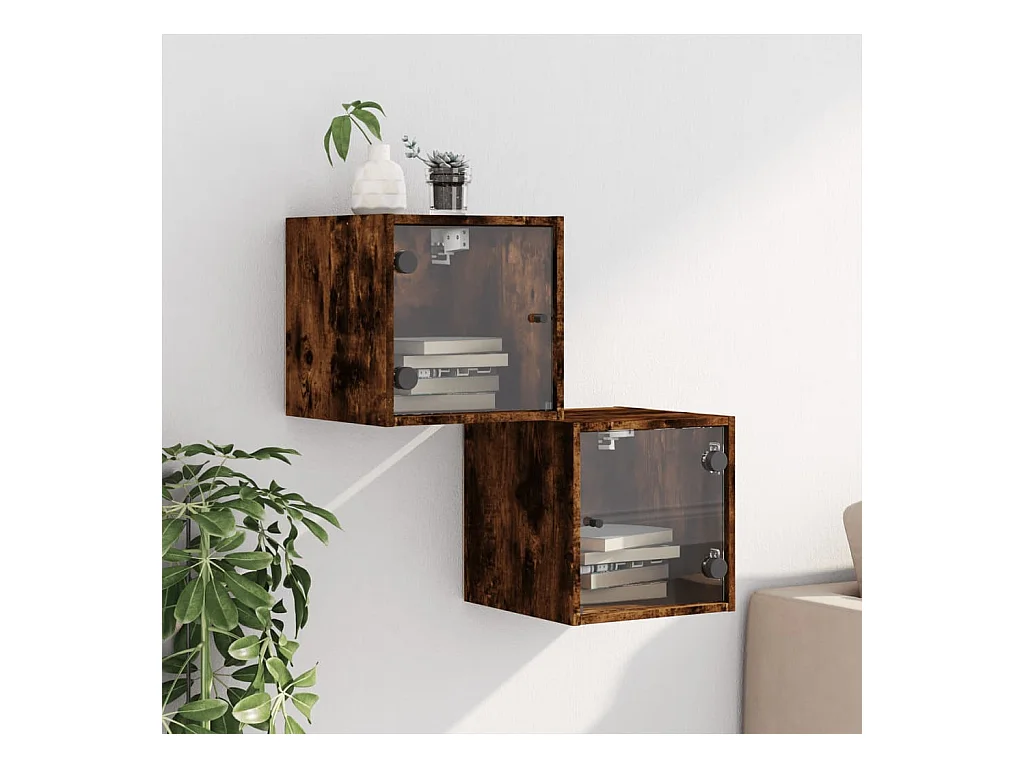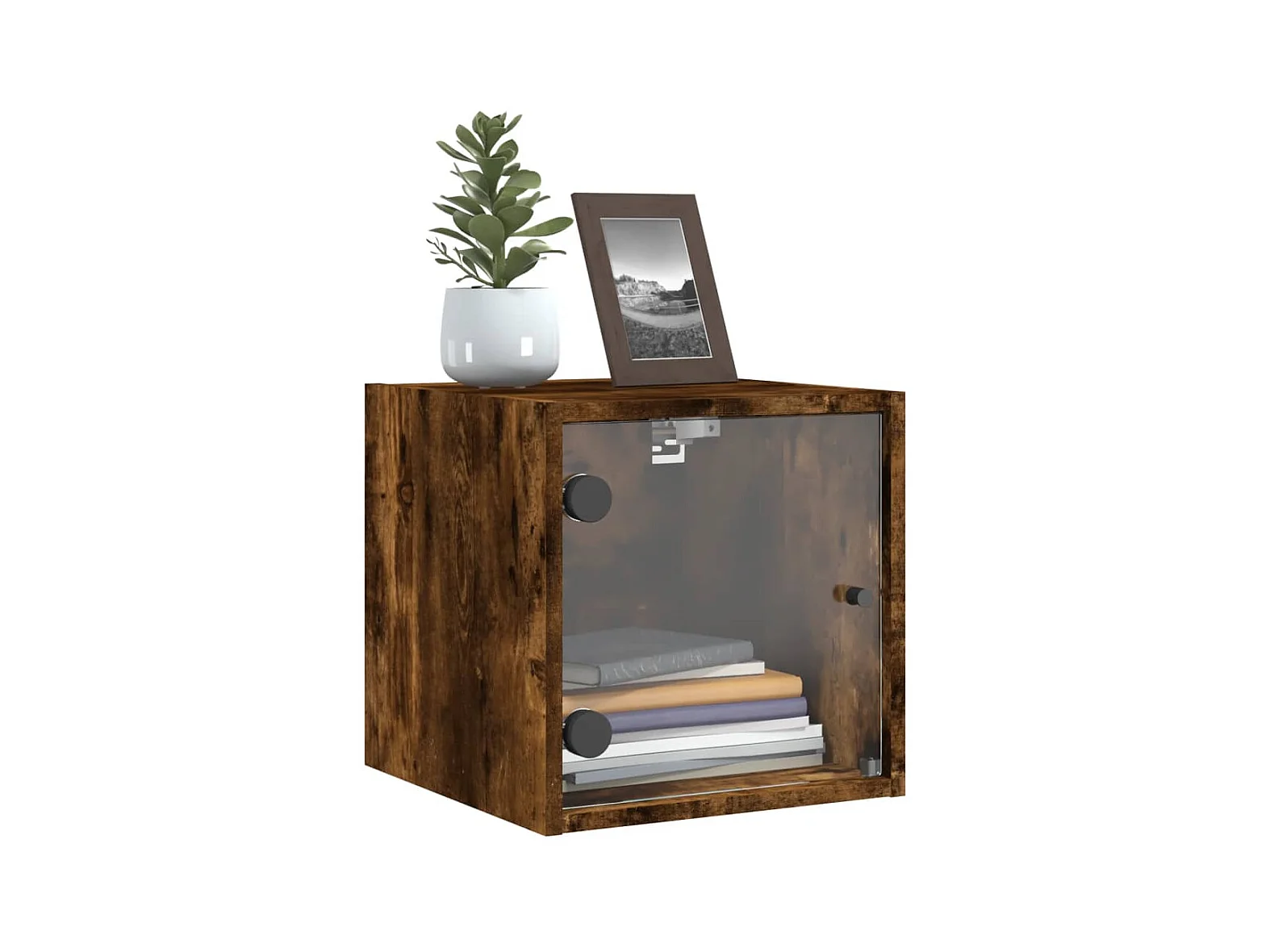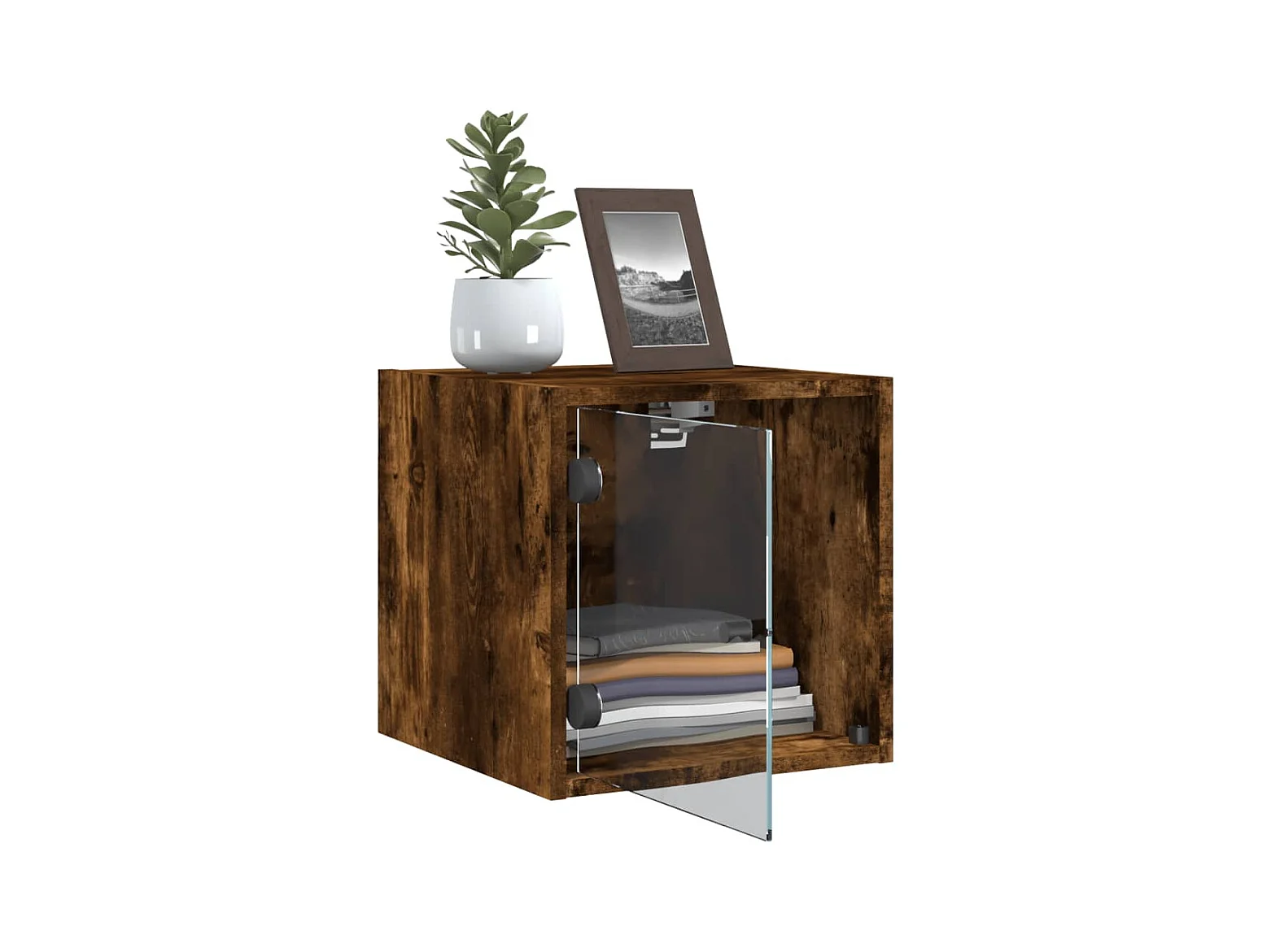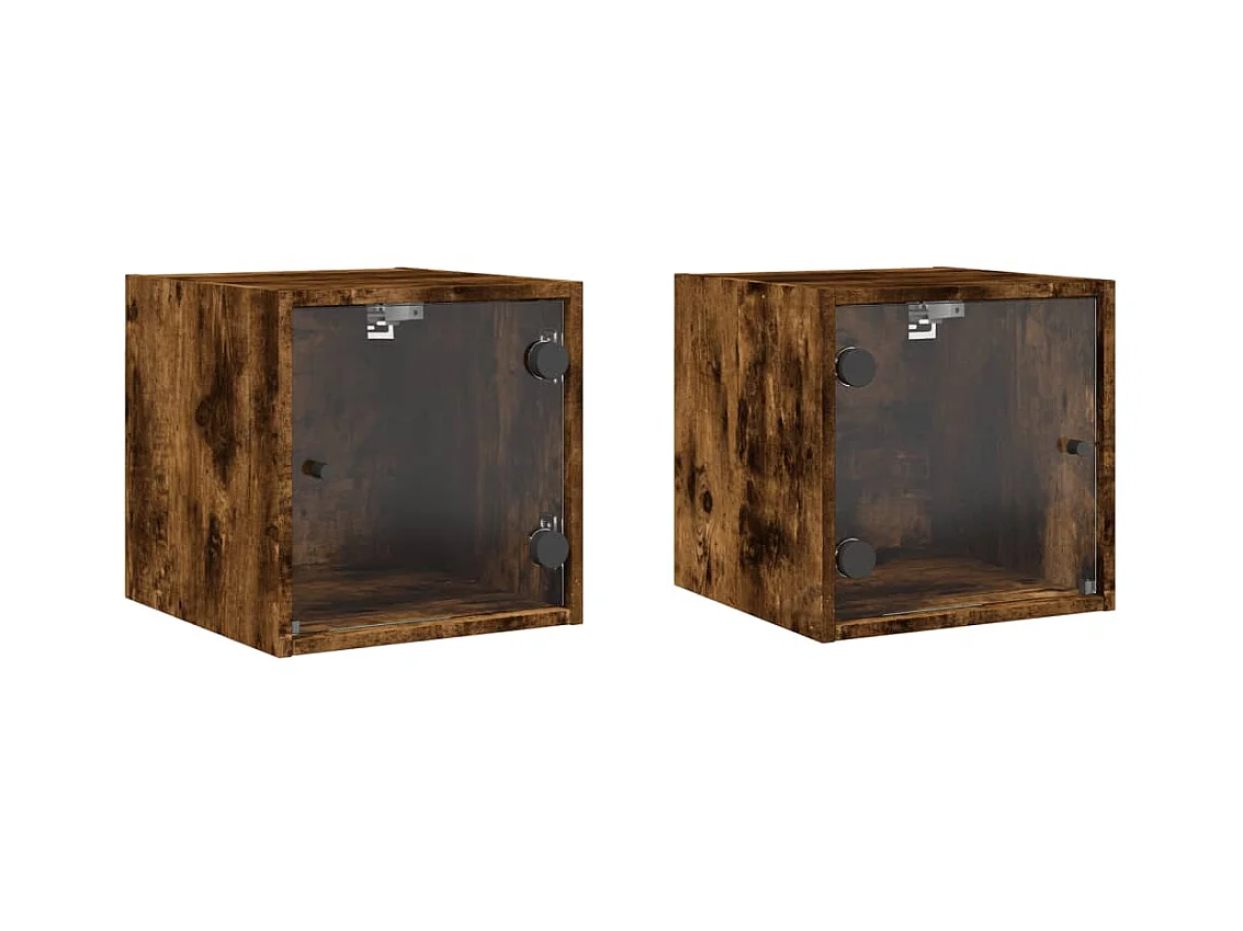 2er-Set Nachttische Nachtschrank mit Glastüren Räuchereiche 35x37x35 cm -RN50260