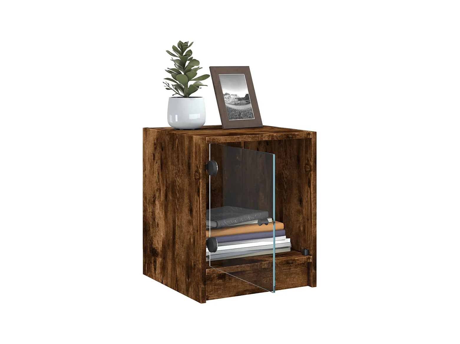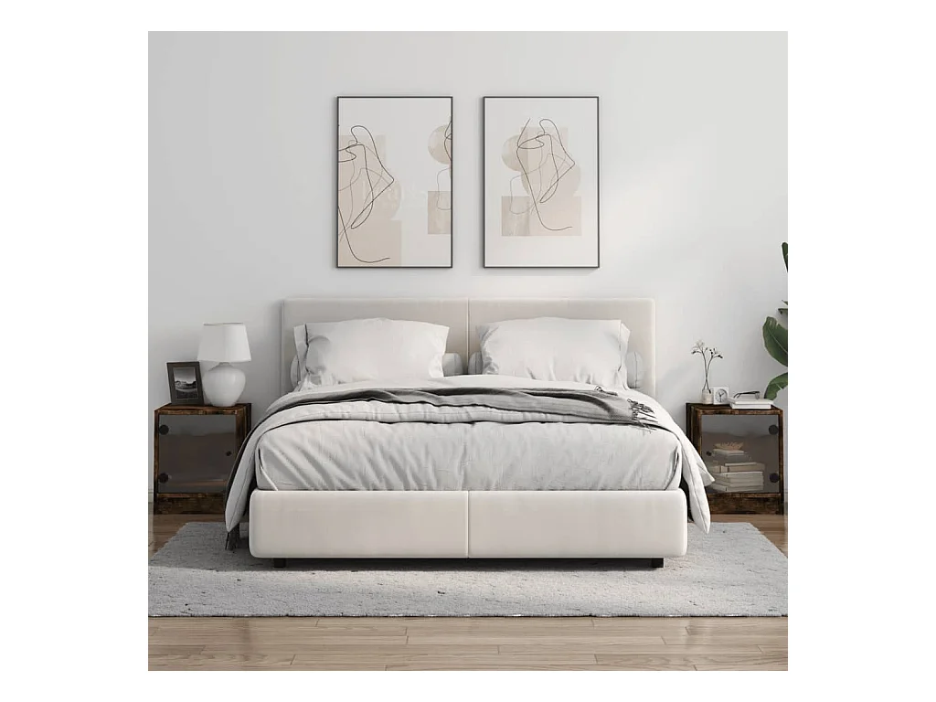 2er-Set Nachttische Nachtschrank mit Glastüren Räuchereiche 35x37x42 cm -RN30222