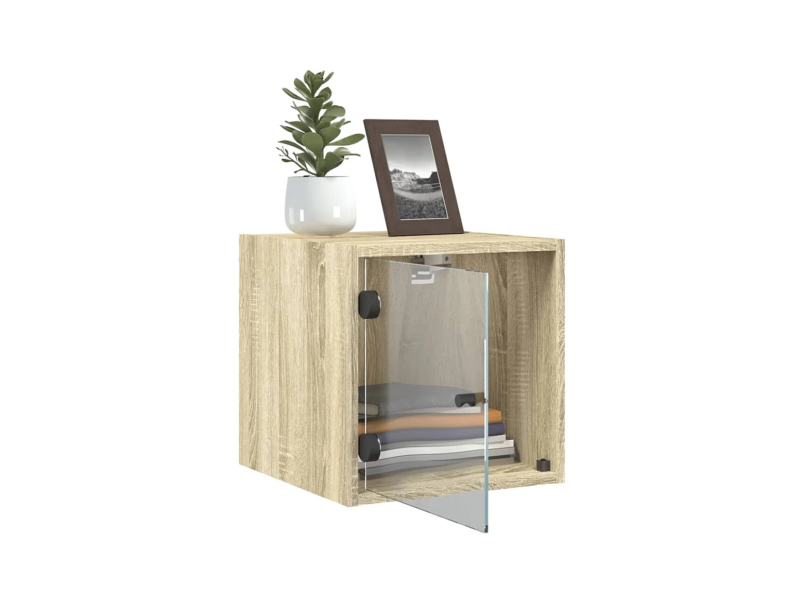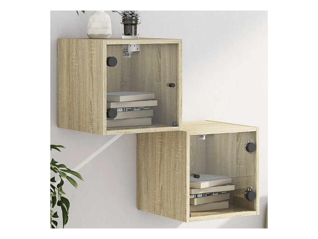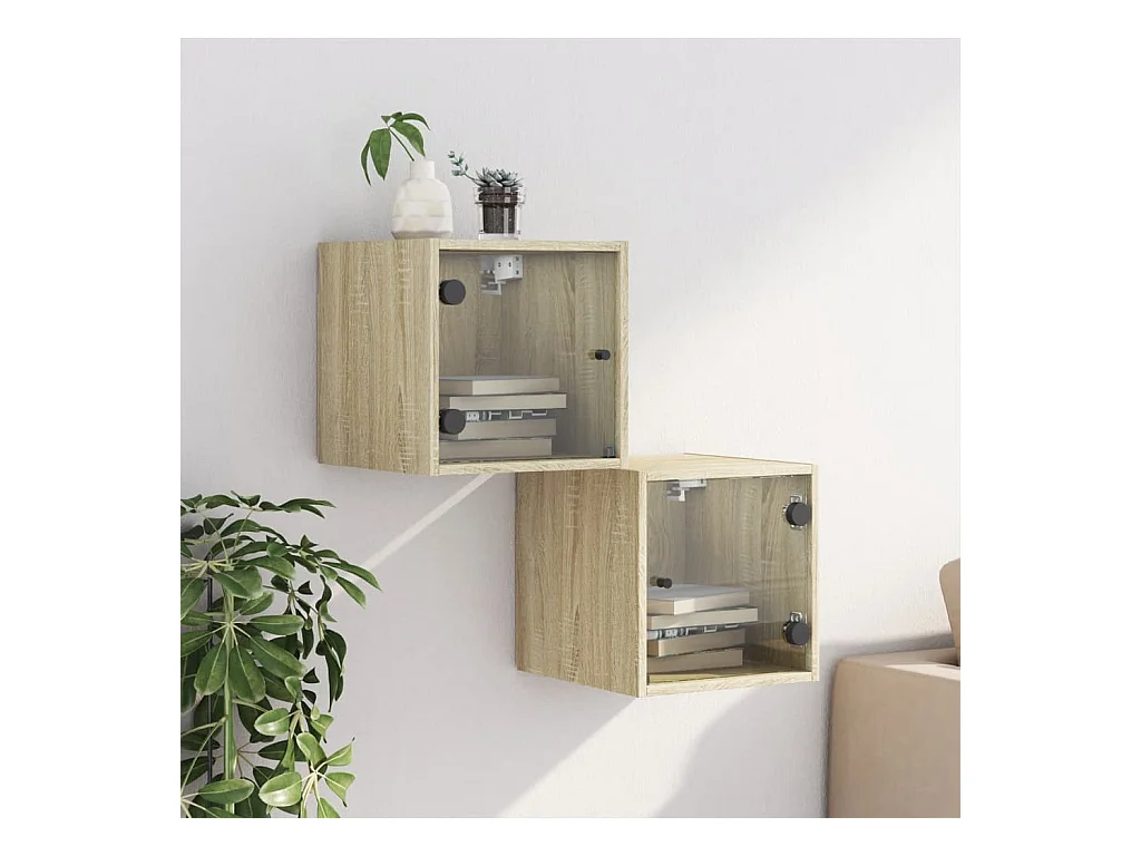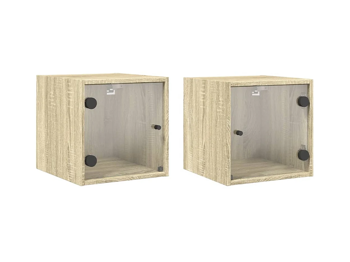 2er-Set Nachttische Nachtschrank mit Glastüren Sonoma-Eiche 35x37x35 cm -RN81636