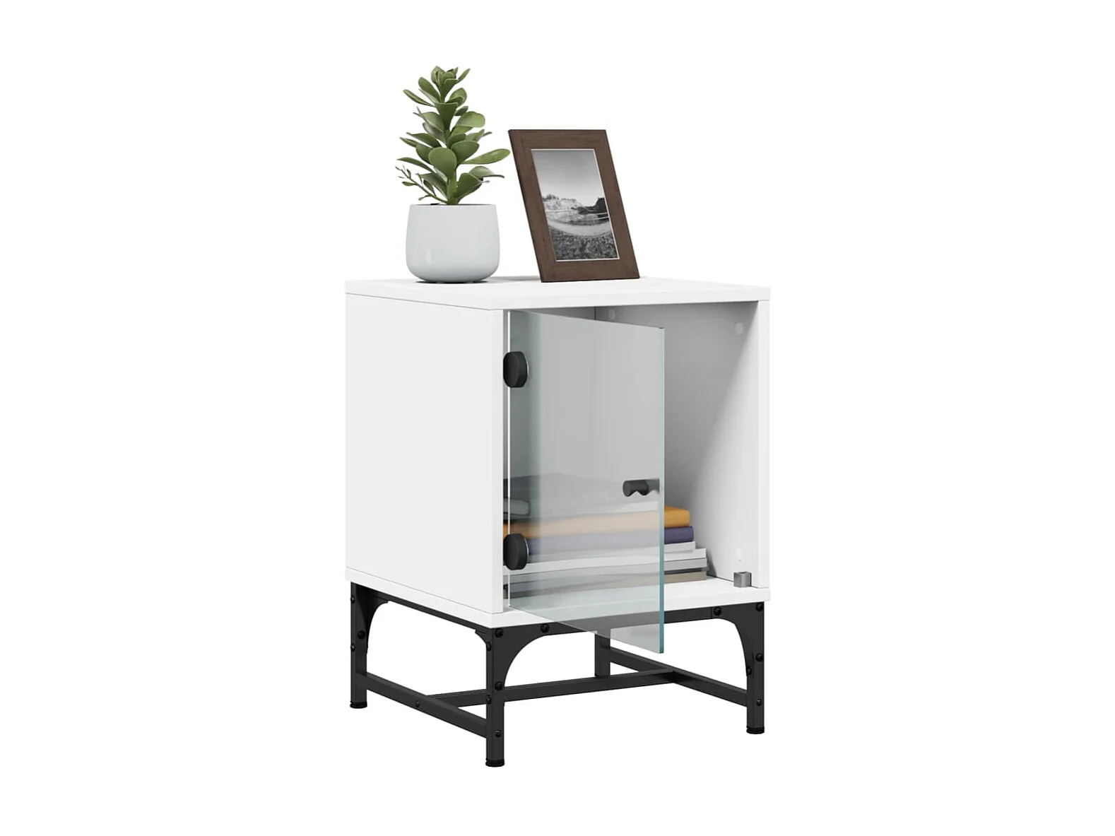 2er-Set Nachttische Nachtschrank mit Glastüren Weiß 35x37x50 cm -RN35628
