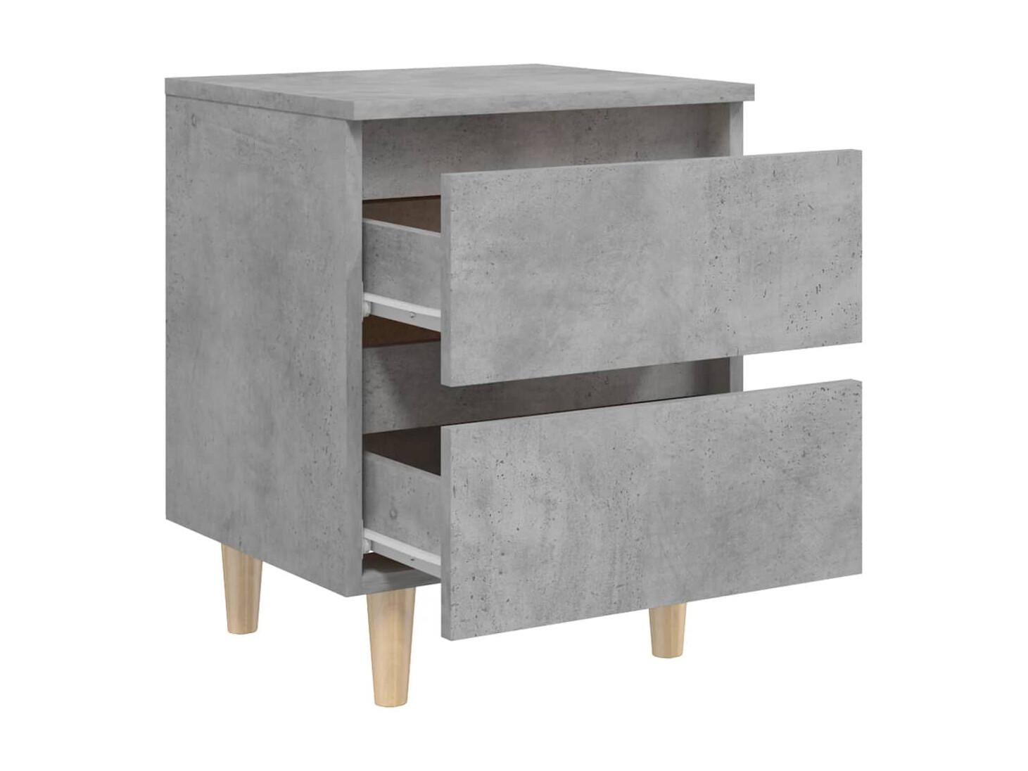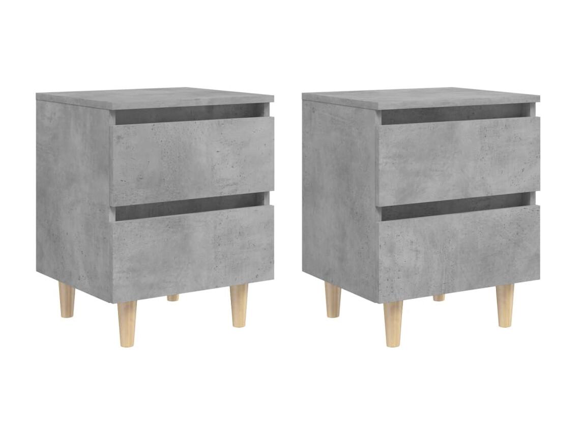2er-Set Nachttische Nachtschrank mit Kiefernholz-Beinen Betongrau 40x35x50 cm -RN43943