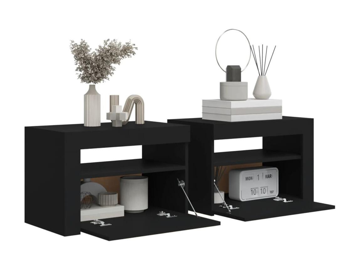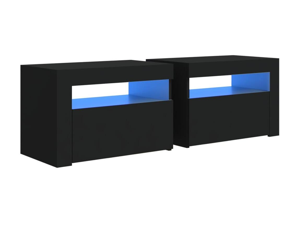 2er-Set Nachttische Nachtschrank mit LEDs Schwarz 60x35x40 cm -RN17500