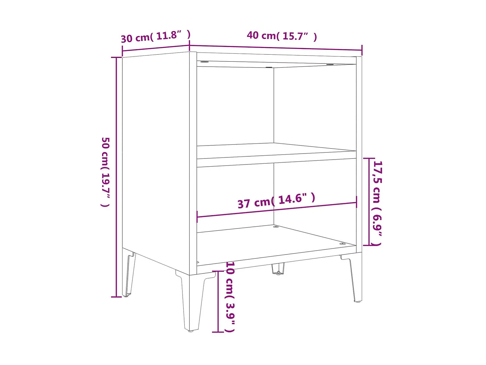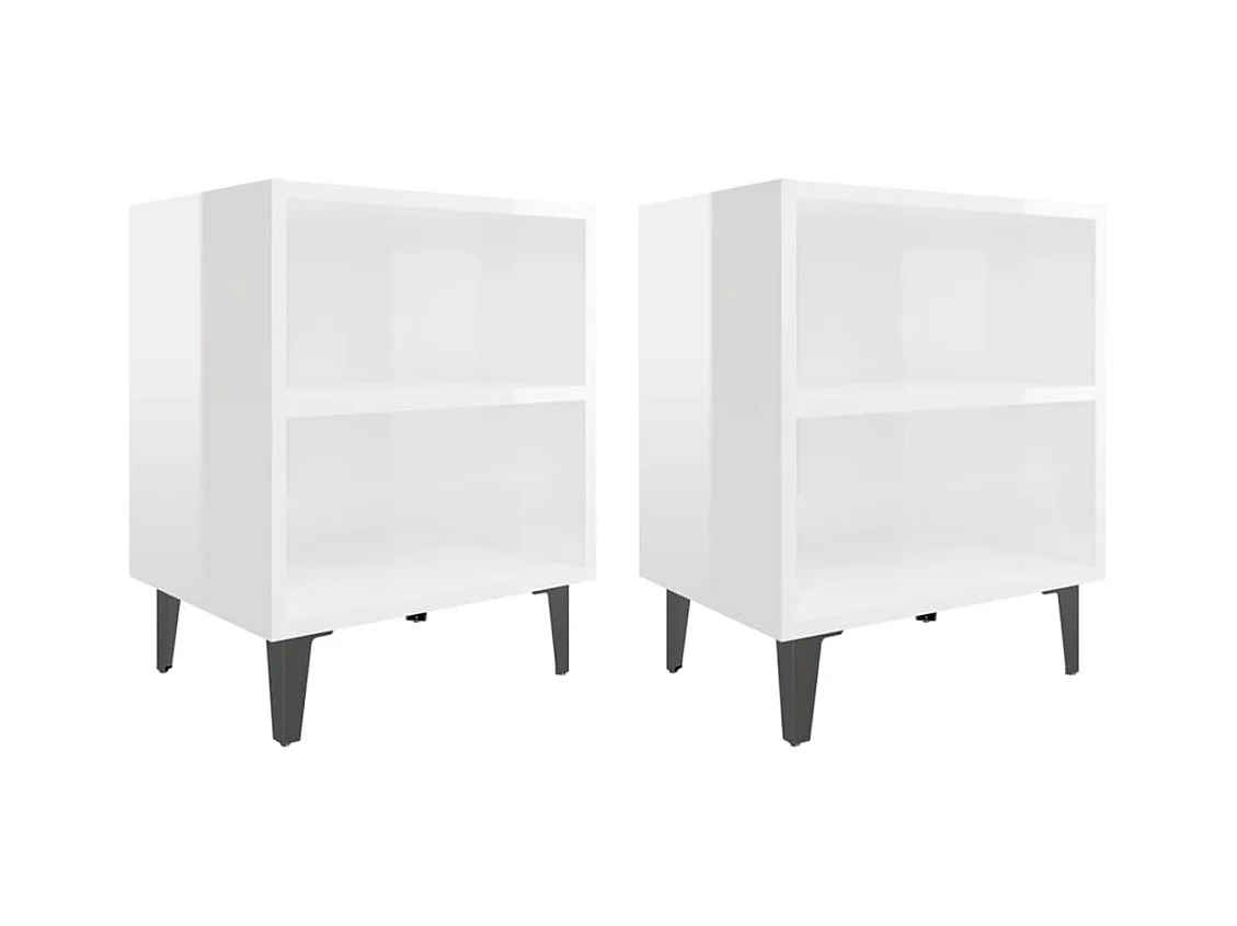2er-Set Nachttische Nachtschrank mit Metallbeinen Hochglanz-Weiß 40x30x50 cm -RN91935