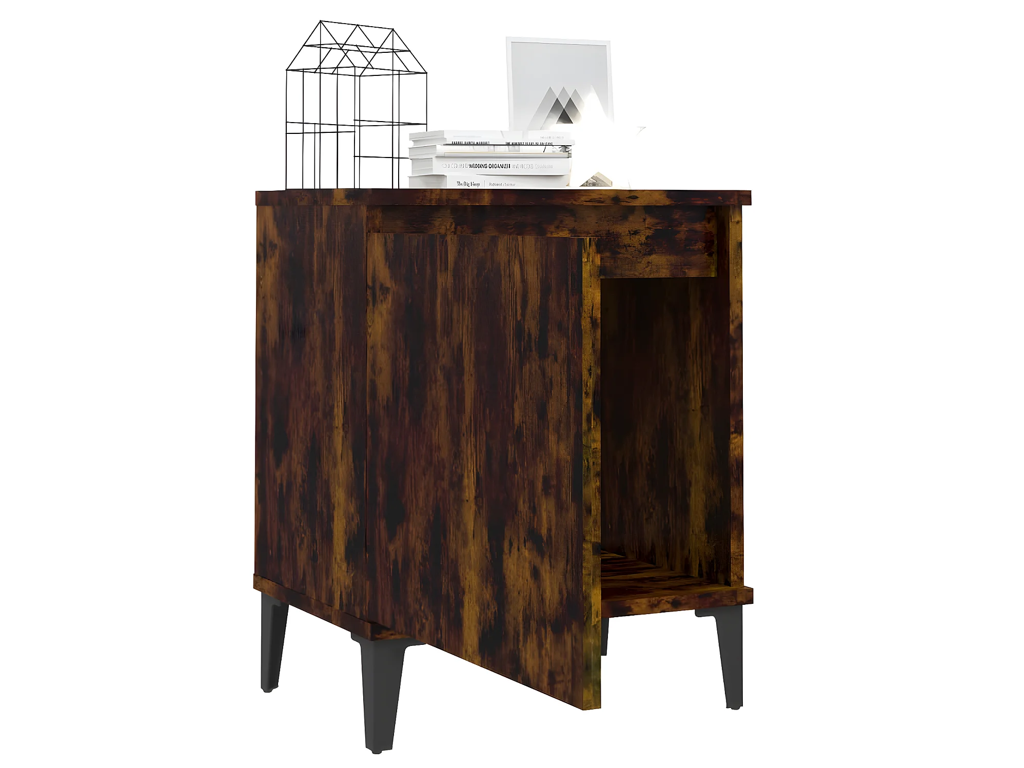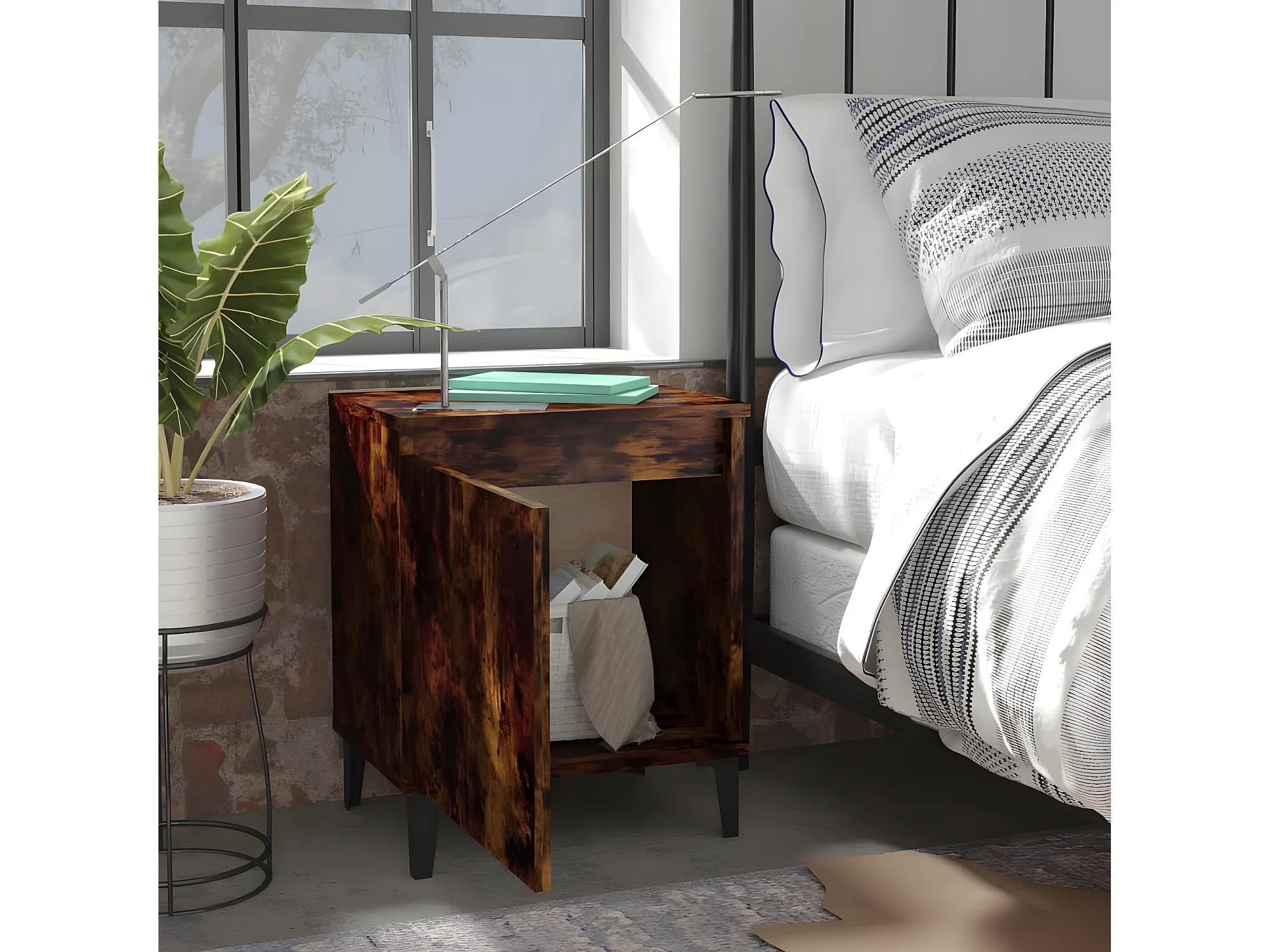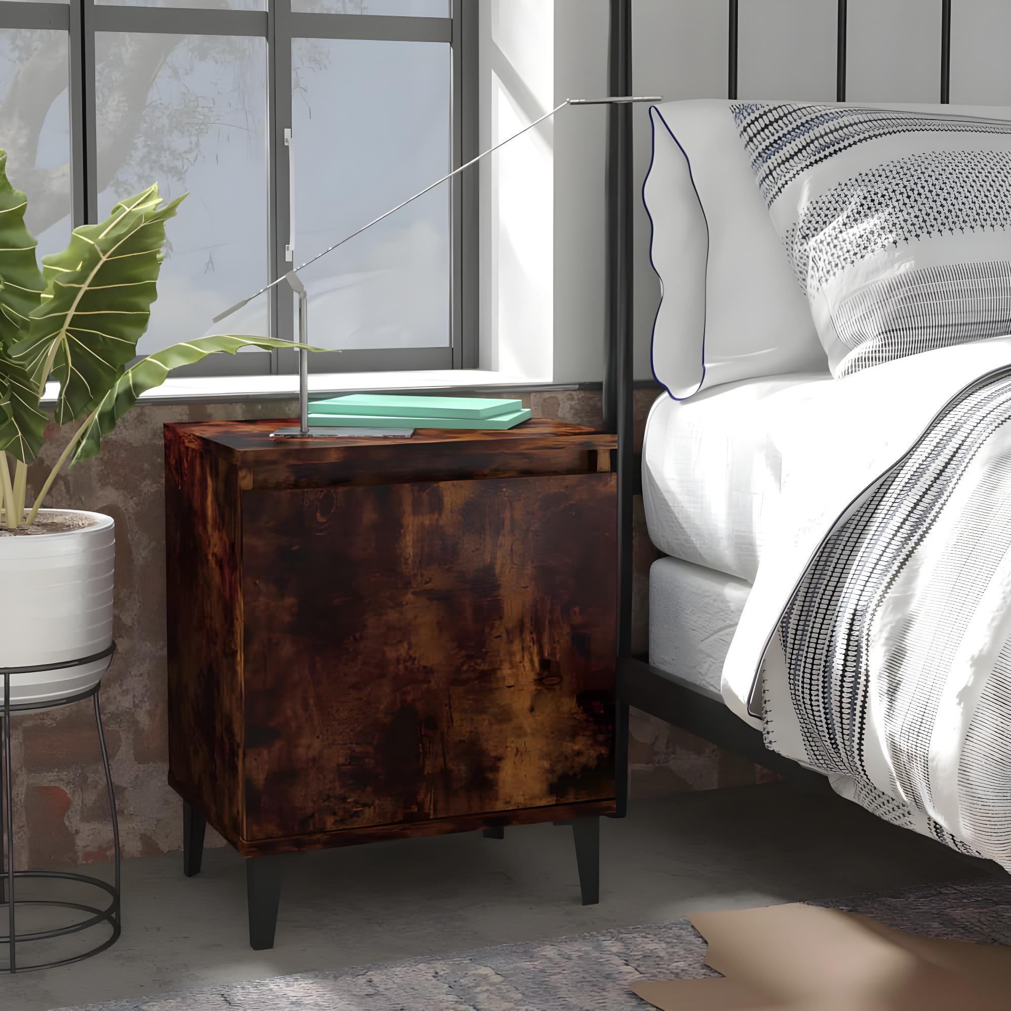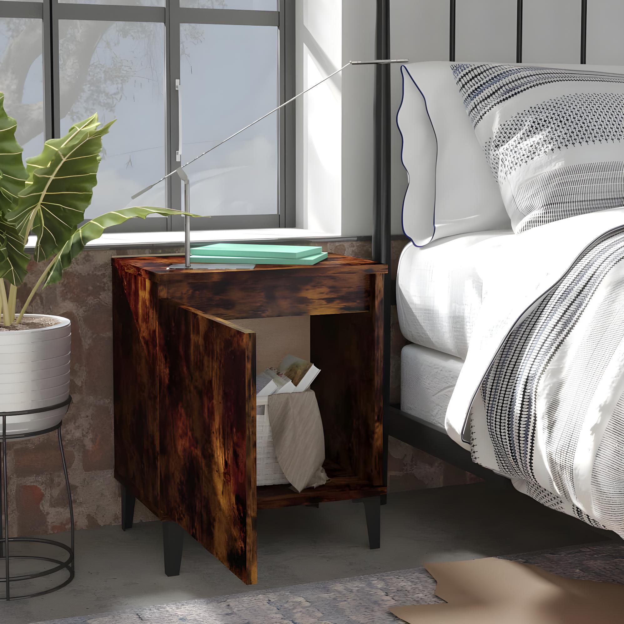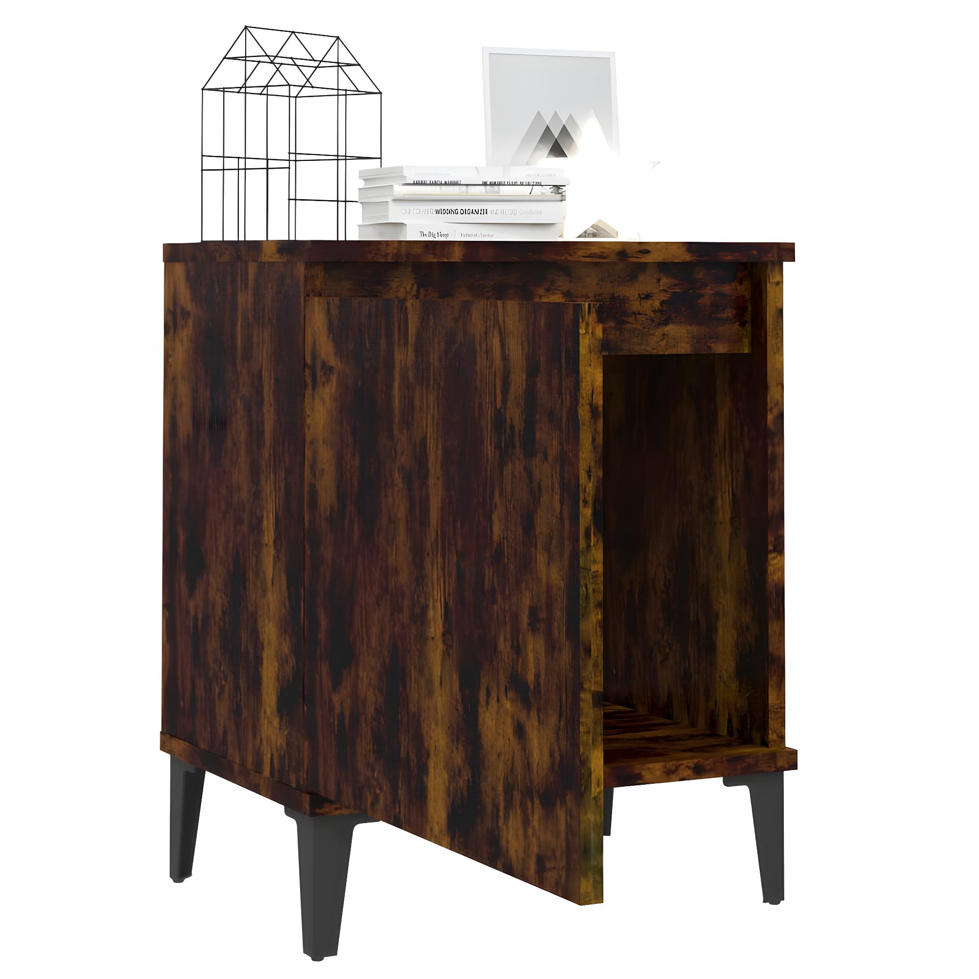 2er-Set Nachttische Nachtschrank mit Metallbeinen Räuchereiche 40x30x50 cm -RN56775