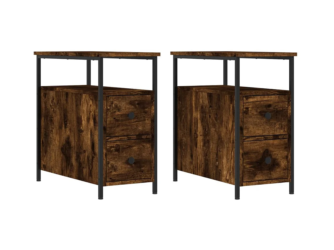 2er-Set Nachttische Nachtschrank Räuchereiche 30x60x60 cm Holzwerkstoff -RN74340