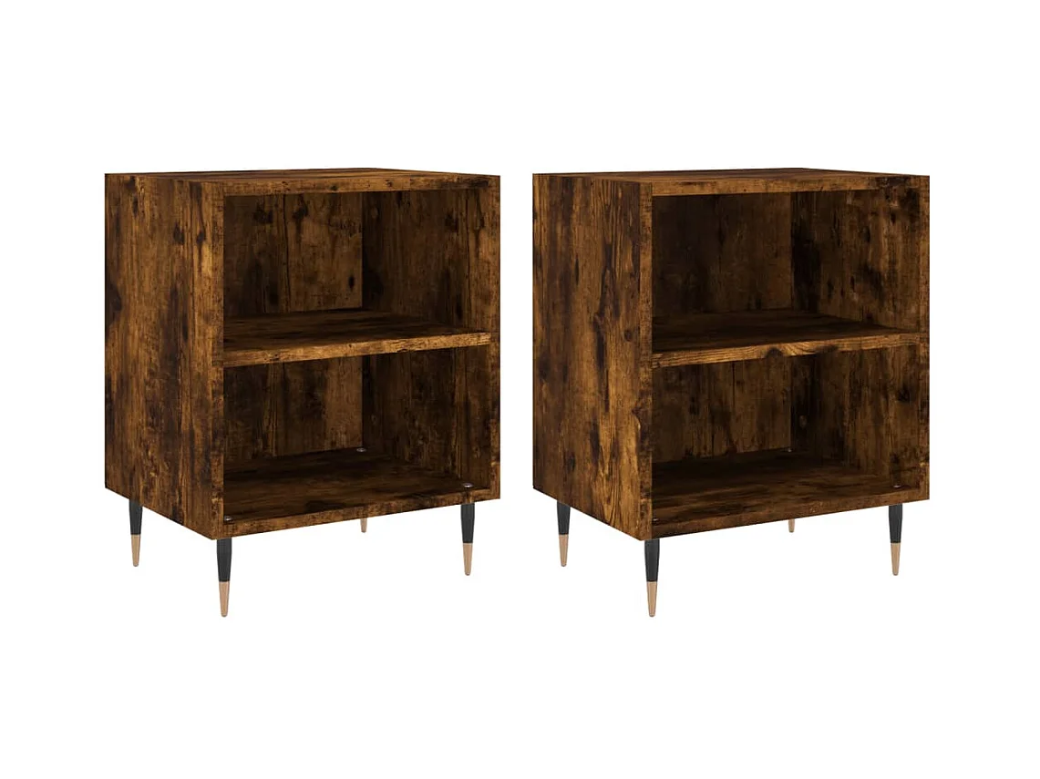 2er-Set Nachttische Nachtschrank Räuchereiche 40x30x50 cm Holzwerkstoff -RN12218