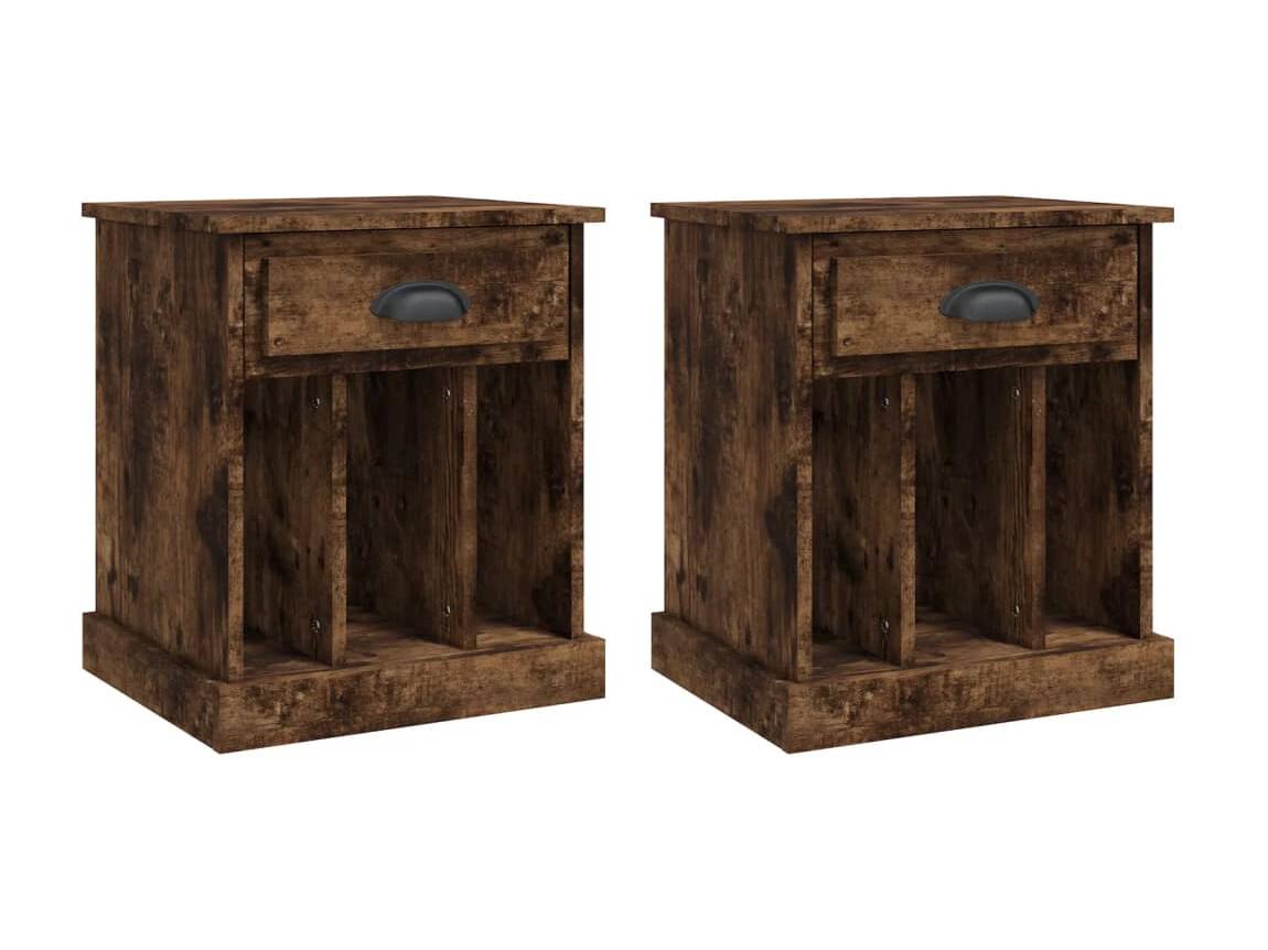 2er-Set Nachttische Nachtschrank Räuchereiche 43x36x50 cm -RN13853