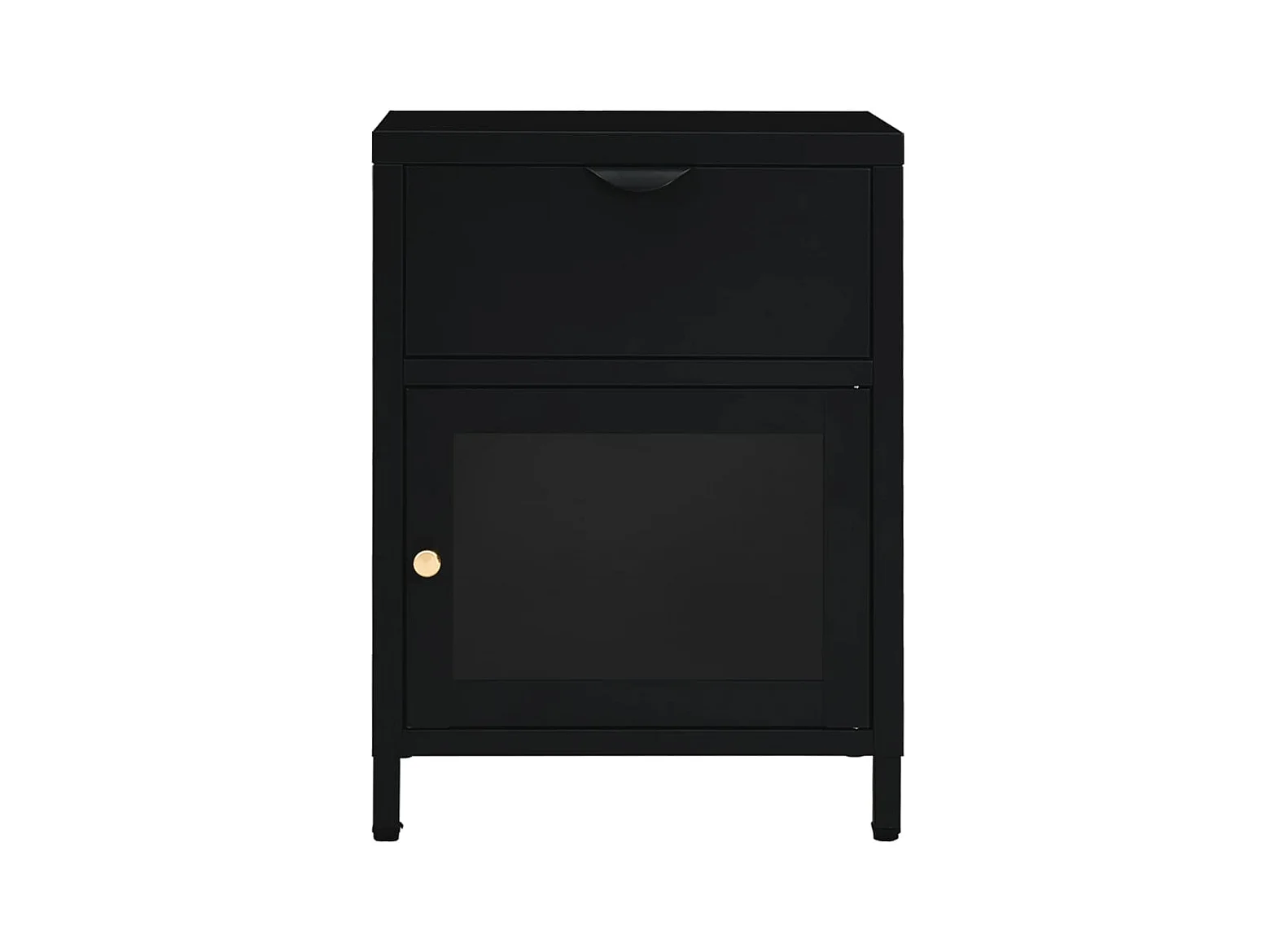 2er-Set Nachttische Nachtschrank Schwarz 40x30x54,5 cm Stahl und Glas -RN77148