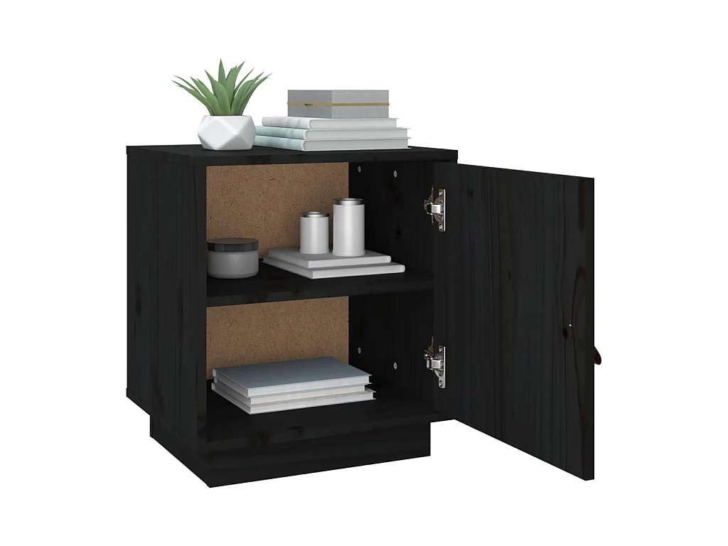 2er-Set Nachttische Nachtschrank Schwarz 40x34x45 cm Massivholz Kiefer -RN26472