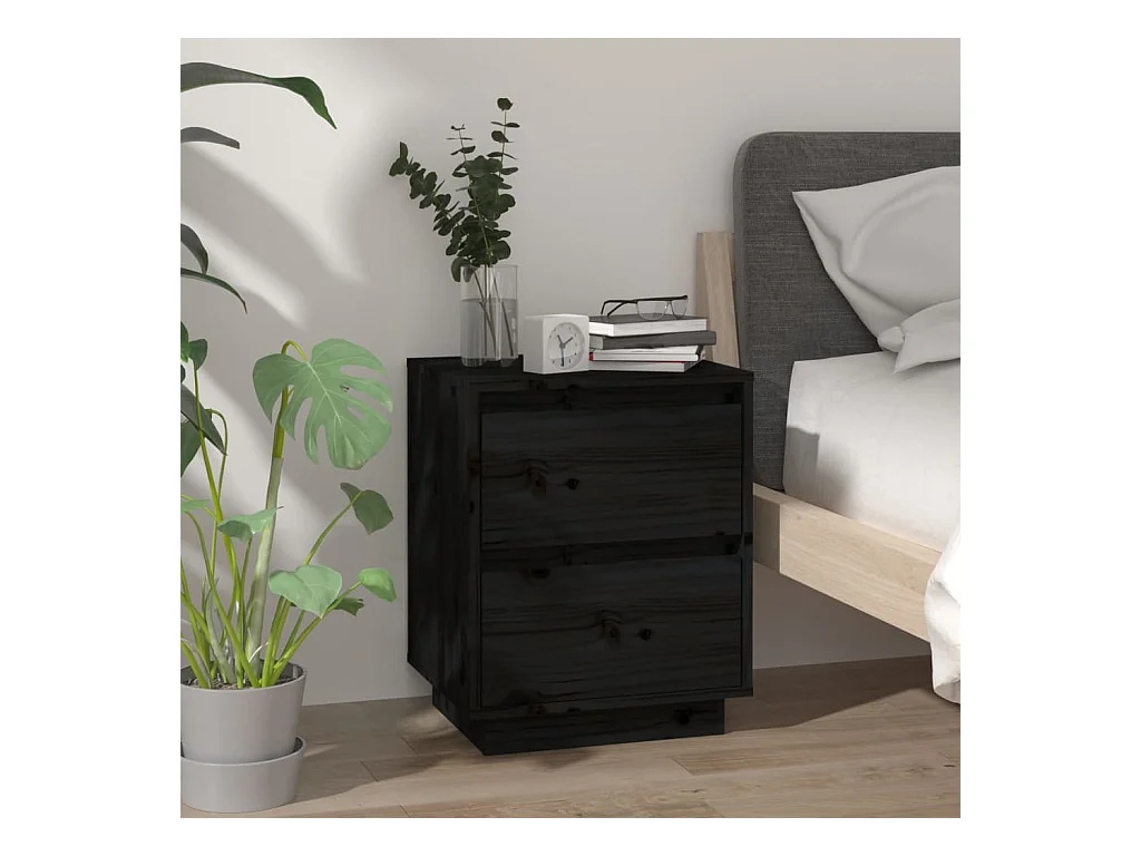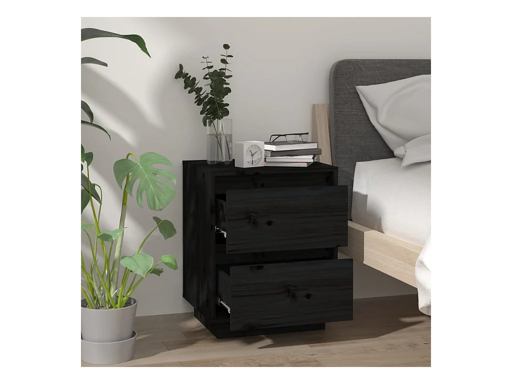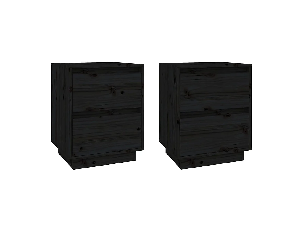 2er-Set Nachttische Nachtschrank Schwarz 40x35x50 cm Massivholz Kiefer -RN76633