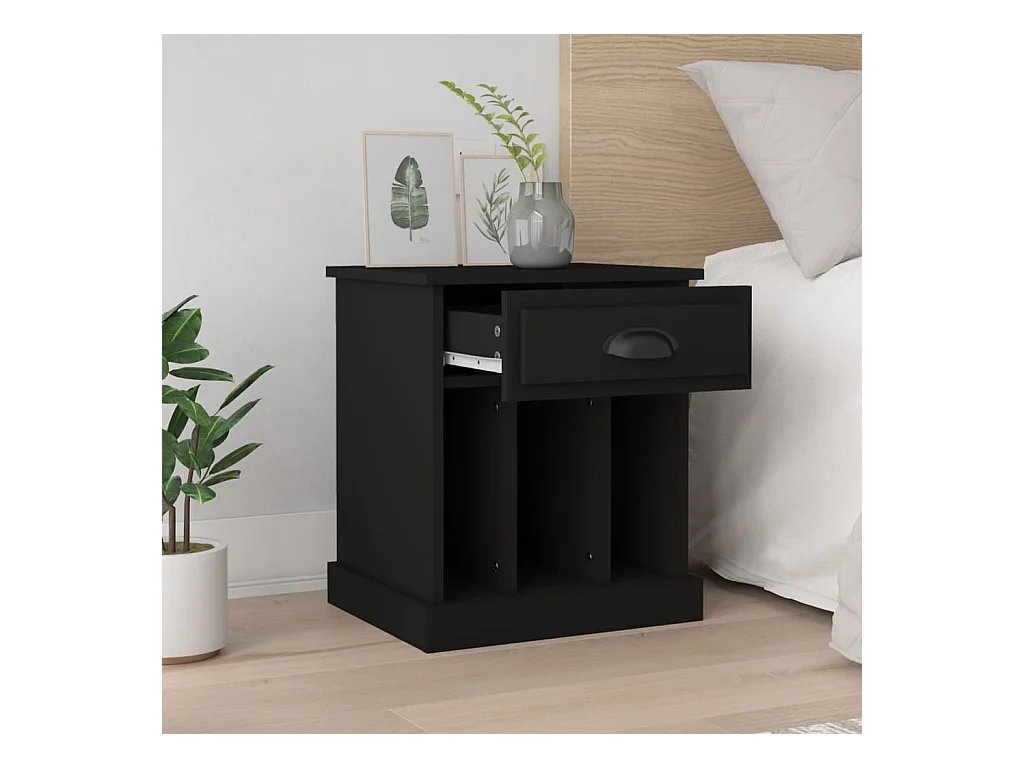 2er-Set Nachttische Nachtschrank Schwarz 43x36x50 cm -RN28034