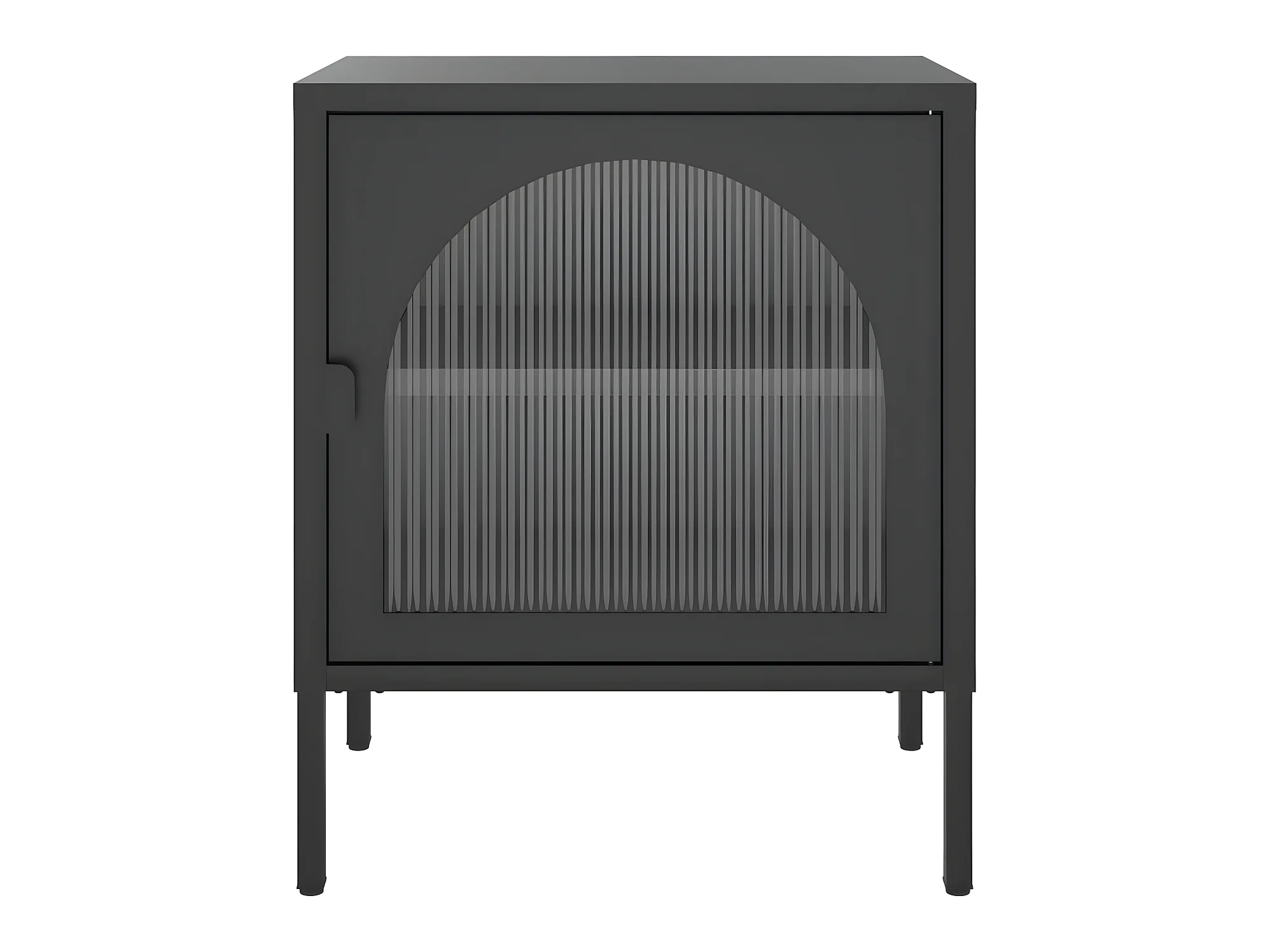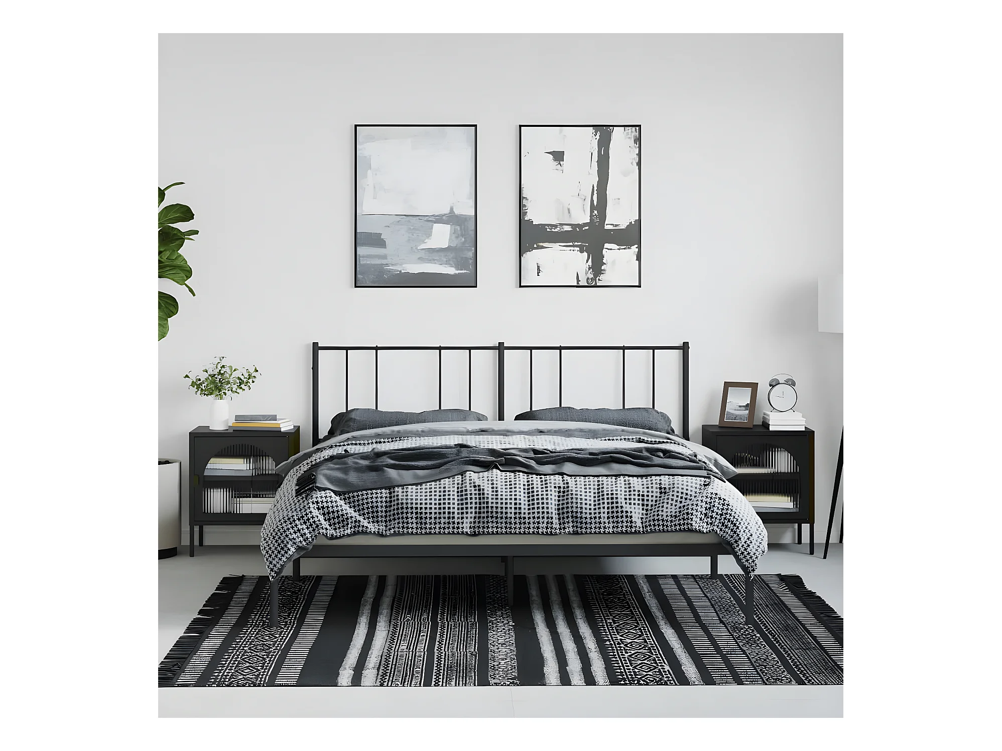 2er-Set Nachttische Nachtschrank Schwarz 50x35x60 cm Glas und Stahl -RN20695