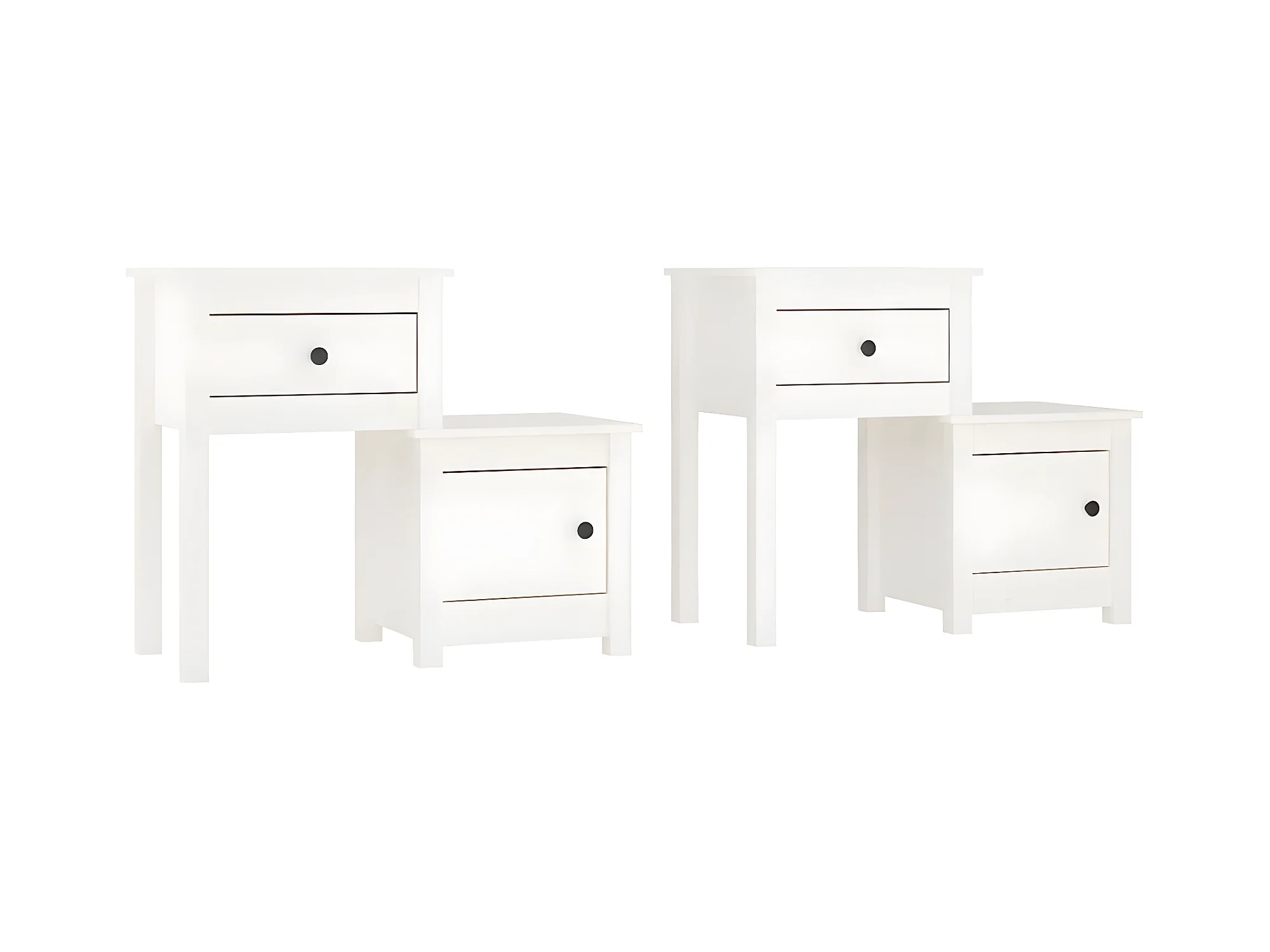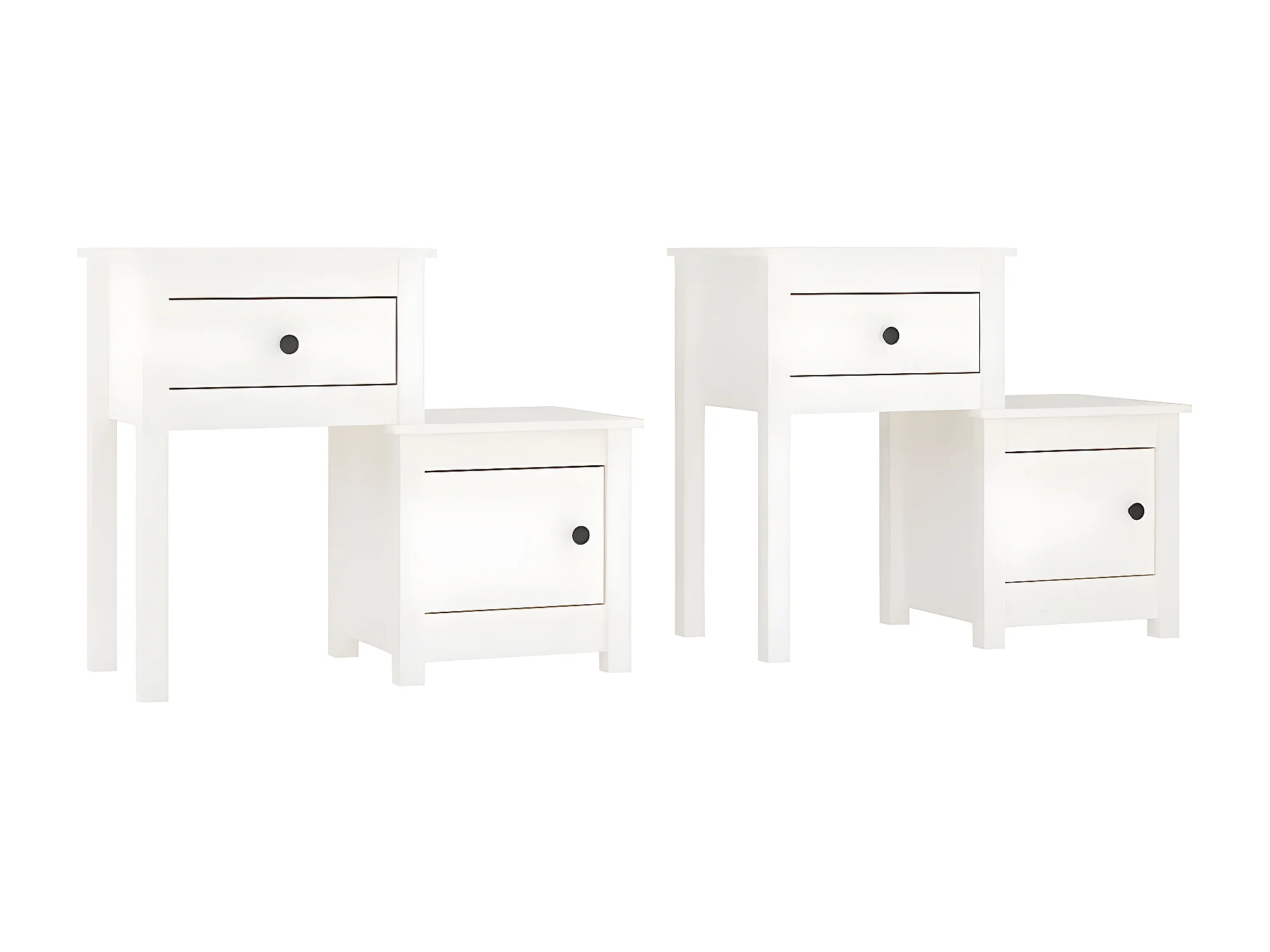 2er-Set Nachttische Nachtschrank Weiß 79,5x38x65,5 cm Massivholz Kiefer -RN20389