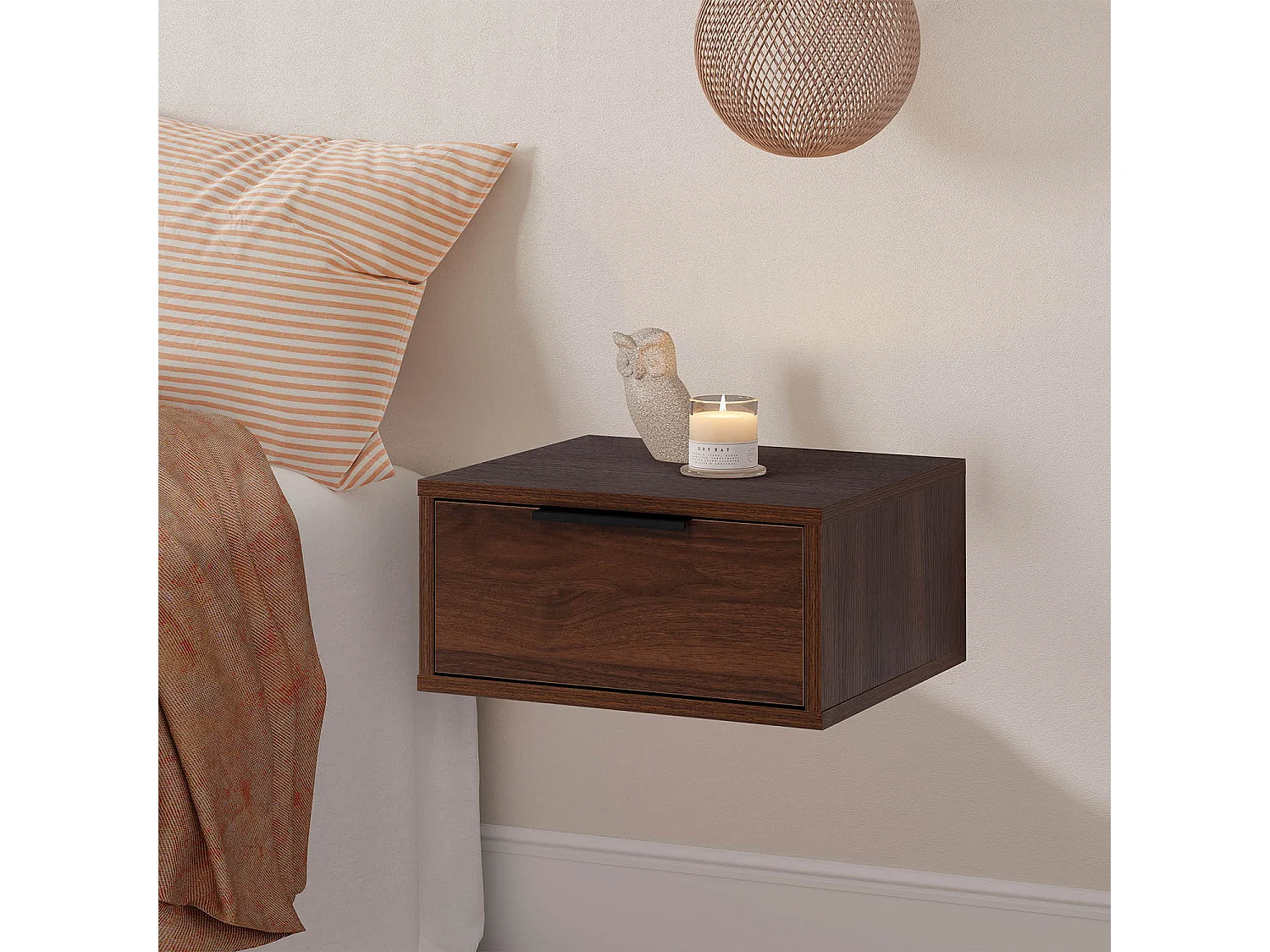 2er-Set Schwebende nachttische Auri 1 schublade Walnuss