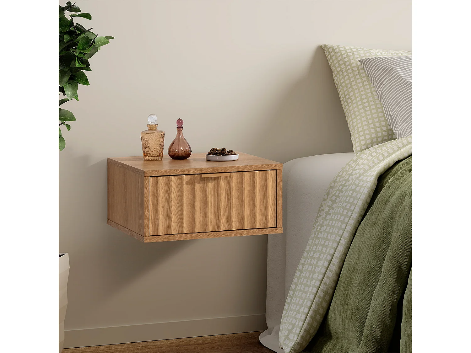 2er-Set Schwebende nachttische Lluvia 1 schublade Eichenfarbe