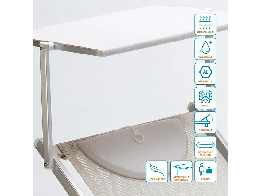 2er Set Sonnenliegen aus Aluminium Professionell für Strand und Meer Italia - Weiß