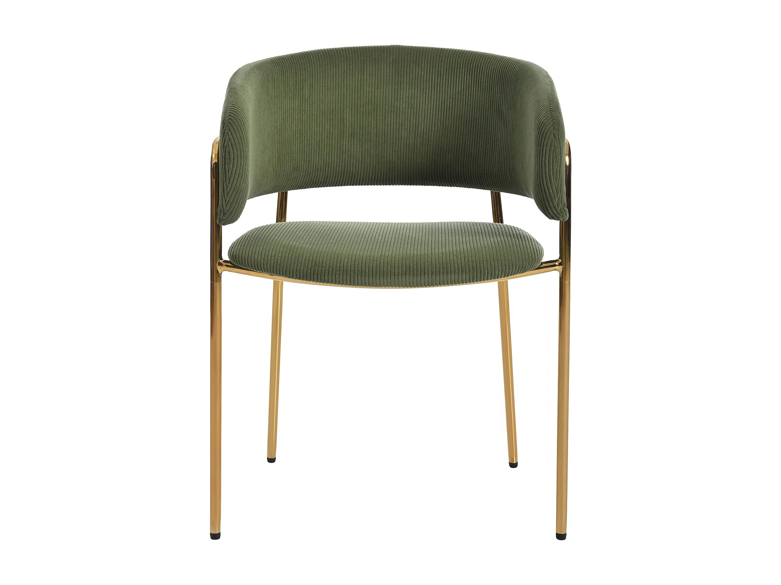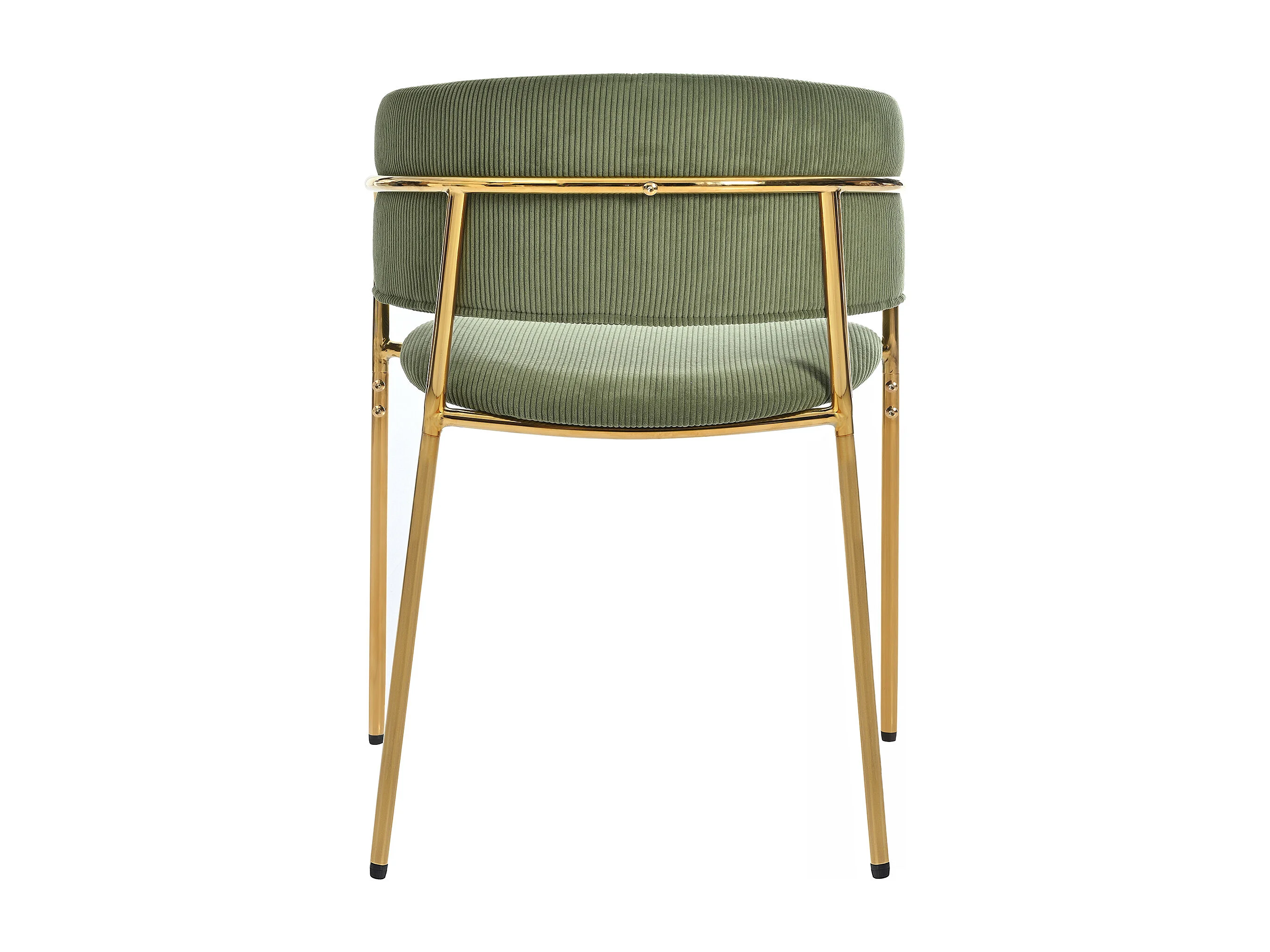 2er-Set Stühle aus grünem Cord mit gepolsterter Rückenlehne und goldenen Beinen für Wohn- und Esszimmer