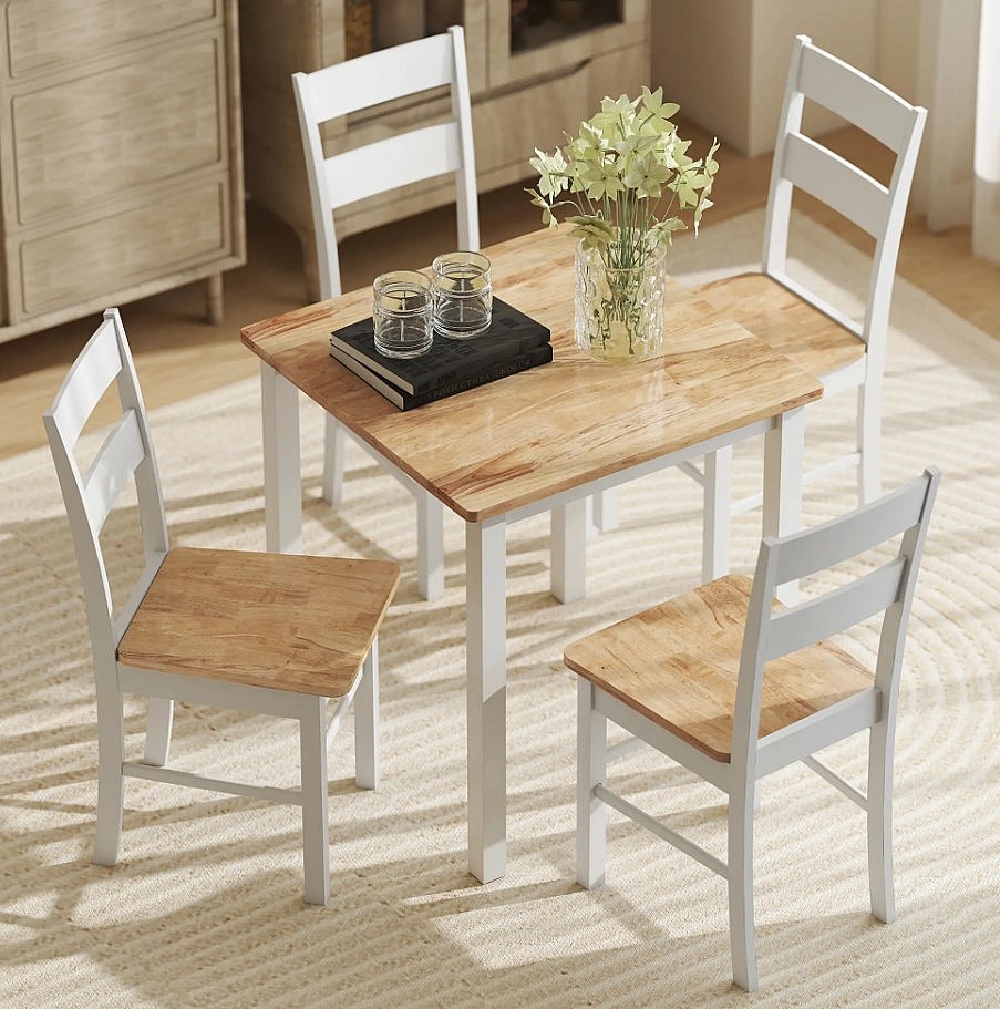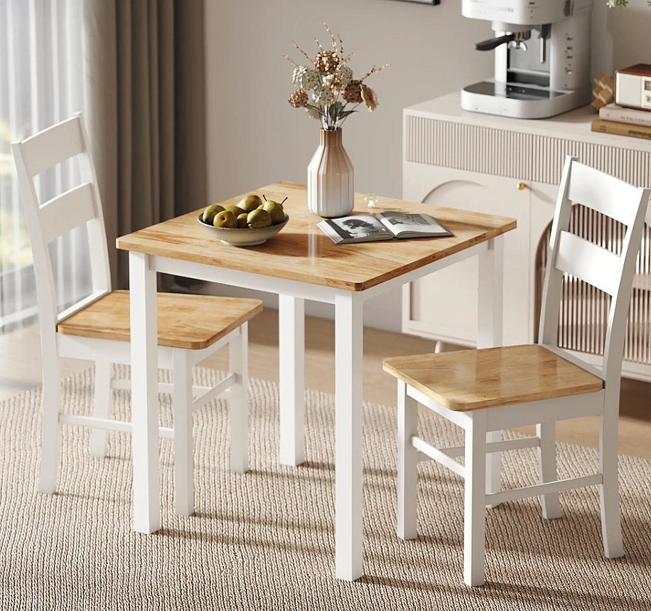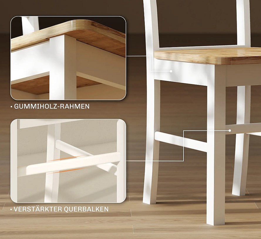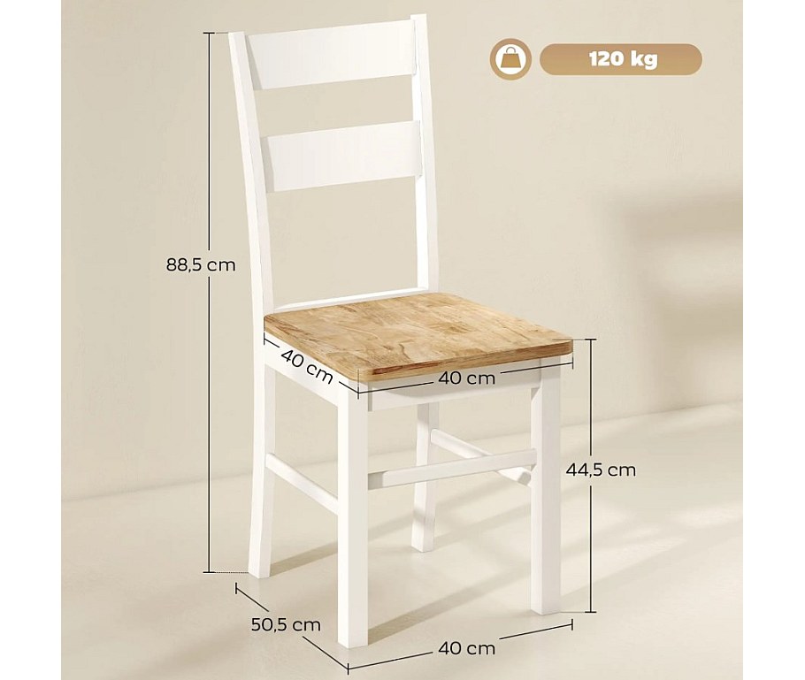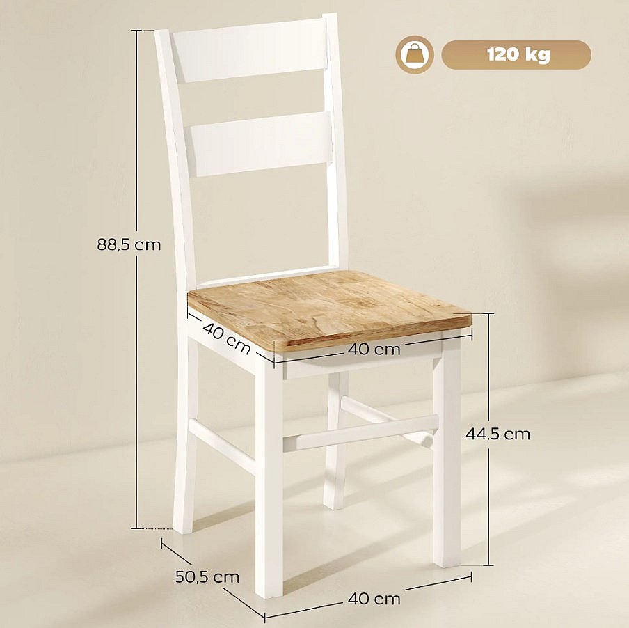 2er-Set Stühle, Küchenstühle,Esszimmerstuhl gebogene Sprossenlehne,Weiß