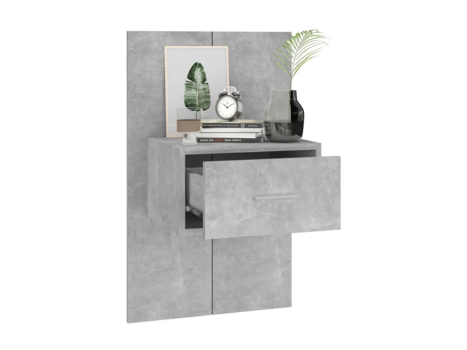 2er-Set Wand-Nachttische Nachtschrank Betongrau -RN41484