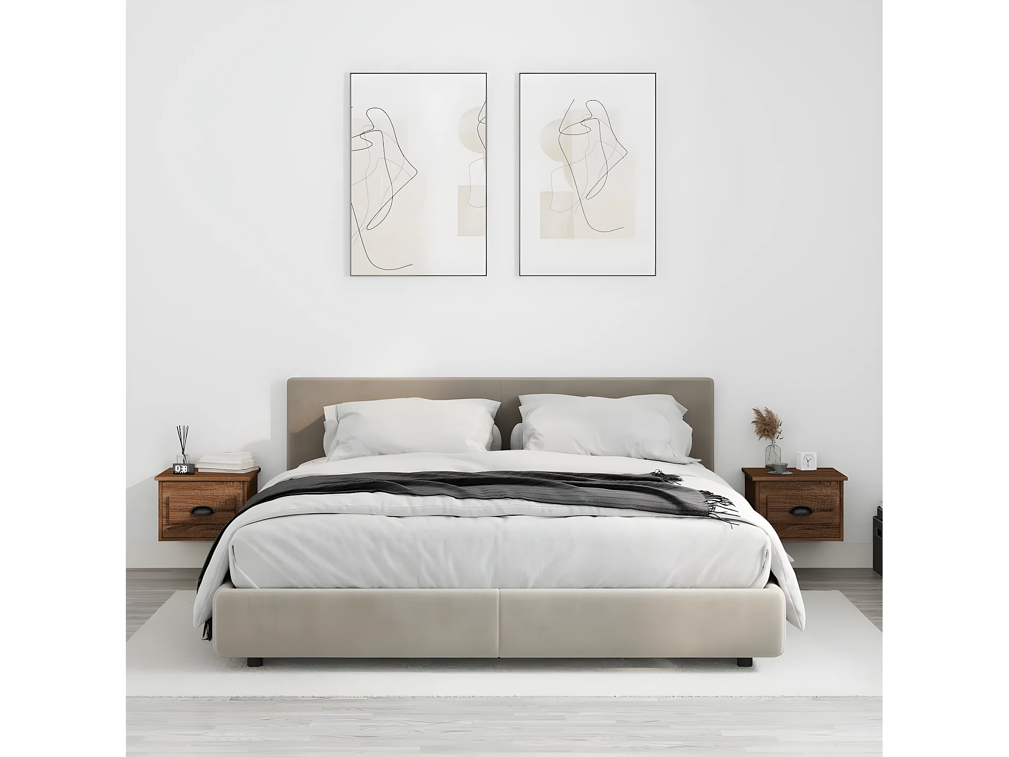 2er-Set Wand-Nachttische Nachtschrank Braun Eichen-Optik 41,5x36x28 cm -RN13836