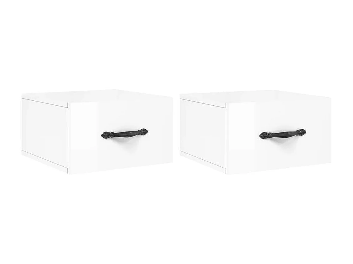 2er-Set Wand-Nachttische Nachtschrank Hochglanz-Weiß 35x35x20 cm -RN11905