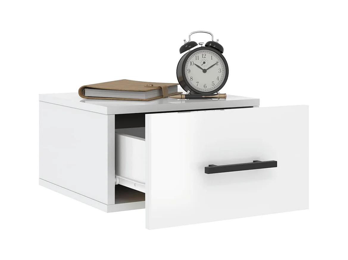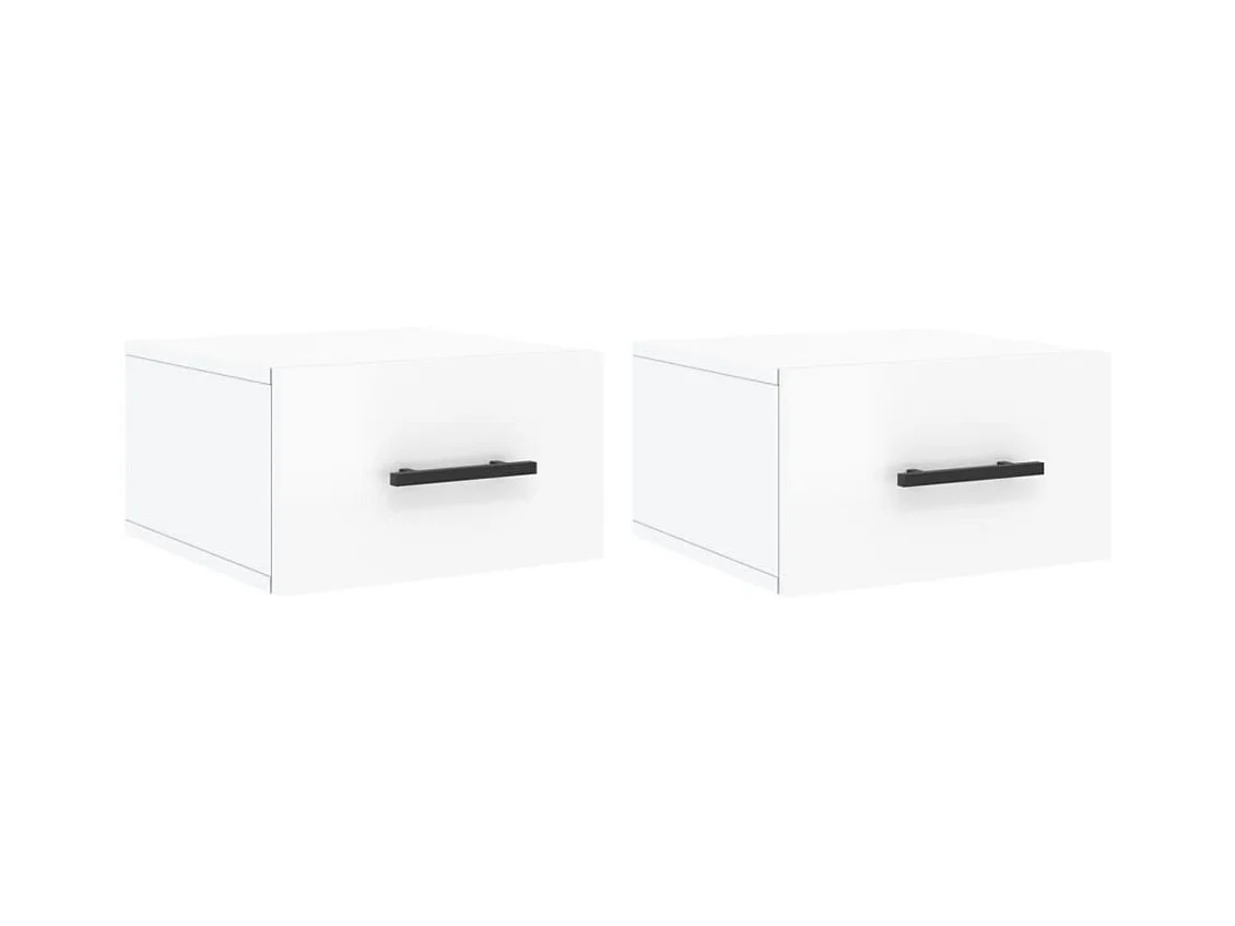 2er-Set Wand-Nachttische Nachtschrank Hochglanz-Weiß 35x35x20 cm -RN67843