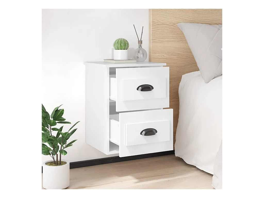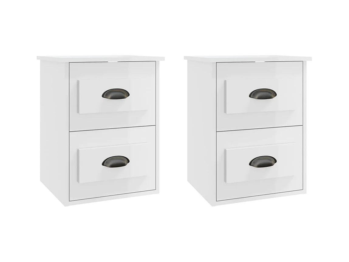 2er-Set Wand-Nachttische Nachtschrank Hochglanz-Weiß 41,5x36x53 cm -RN87461