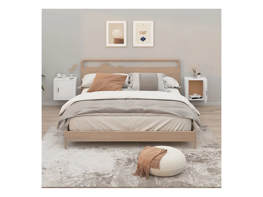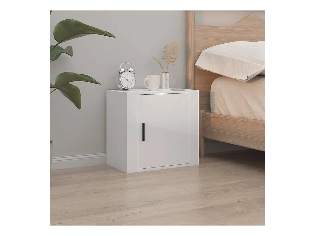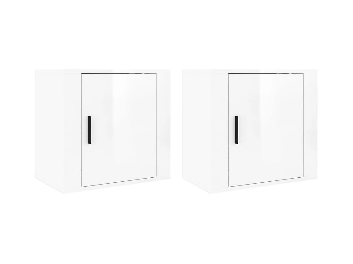 2er-Set Wand-Nachttische Nachtschrank Hochglanz-Weiß 50x30x47 cm -RN55676