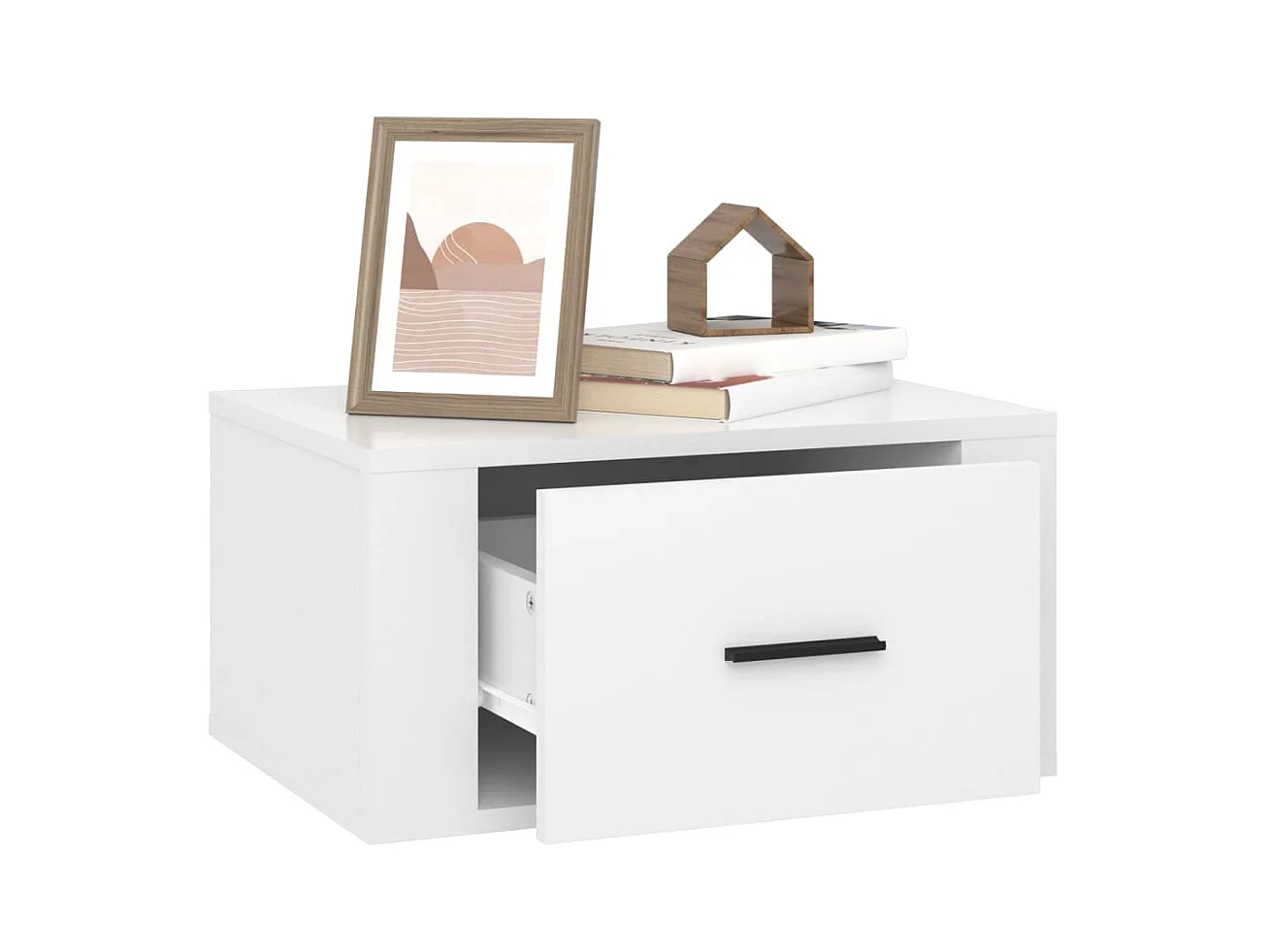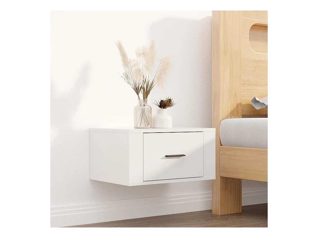 2er-Set Wand-Nachttische Nachtschrank Hochglanz-Weiß 50x36x25 cm -RN88747