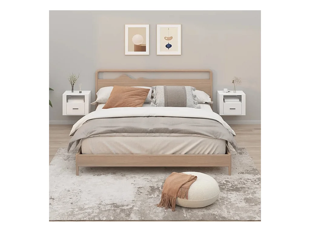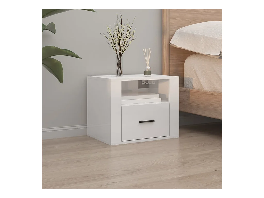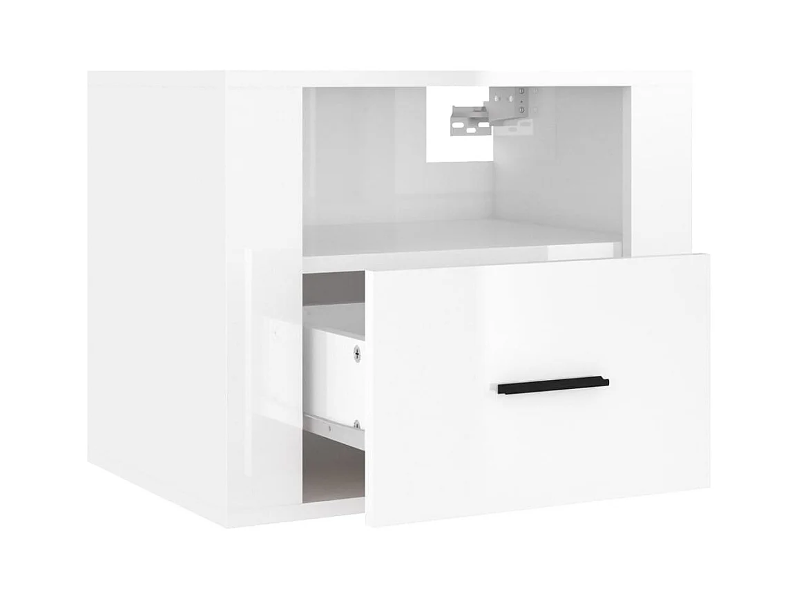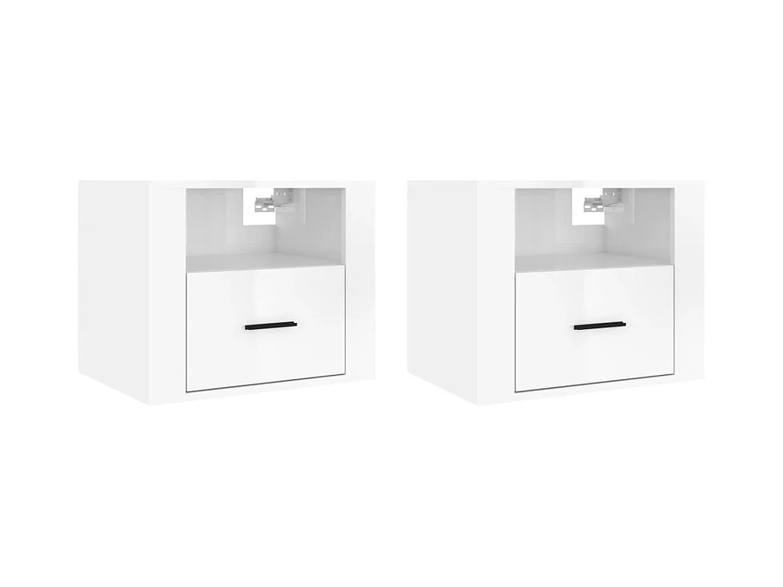 2er-Set Wand-Nachttische Nachtschrank Hochglanz-Weiß 50x36x40 cm -RN69031