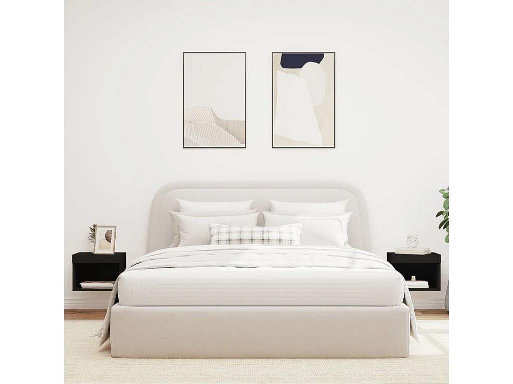2er-Set Wand-Nachttische Nachtschrank mit LED-Leuchten Schwarz -RN12657