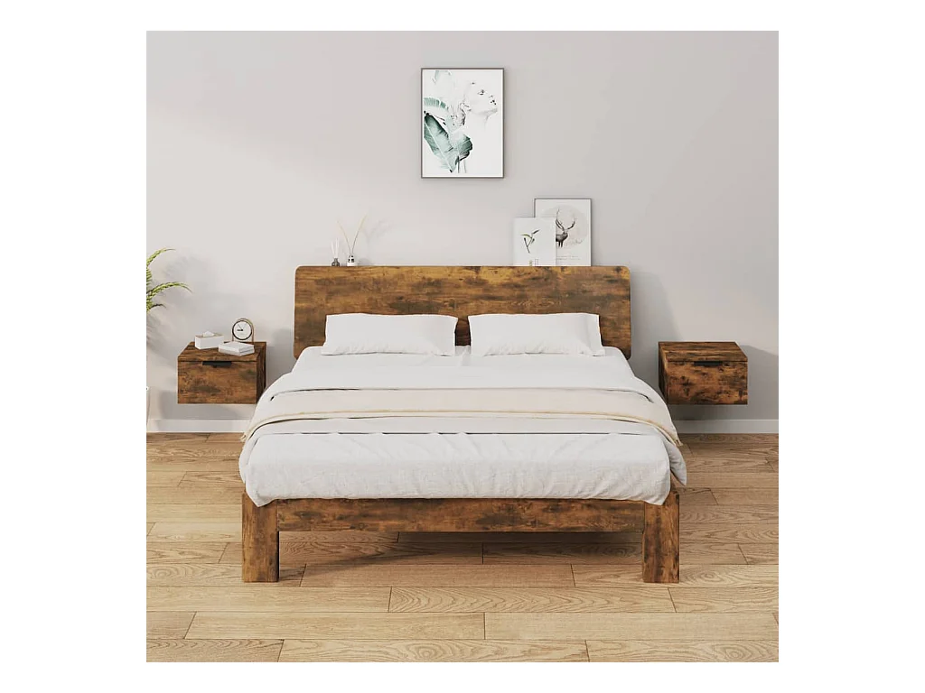 2er-Set Wand-Nachttische Nachtschrank Räuchereiche 34x30x20 cm -RN71882